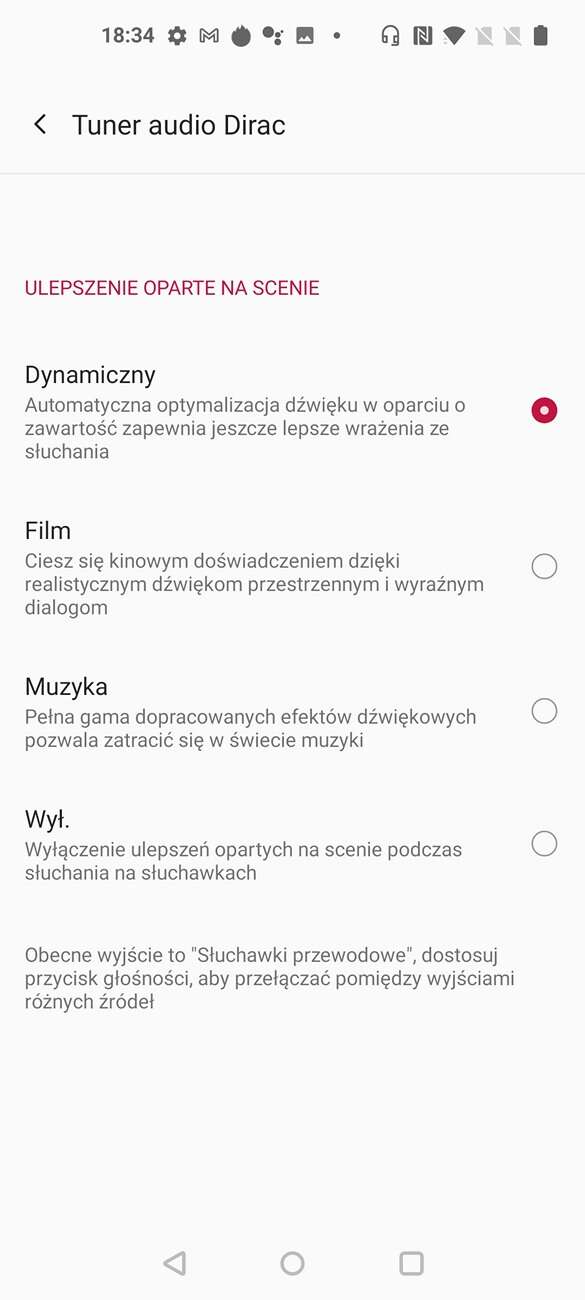 Po podłączeniu słuchawek pod złącze miniJack jest lepiej… ale niewiele lepiej. Słyszalnych zniekształceń nie ma, ale ciężko mówić o przestrzennym dźwięku. Oczywiście wiele zależy również od jakości podłączonych słuchawek. W ustawieniach znajdziemy Tuner audio Dirac, gdzie możemy dostosować barwę dźwięku. Nie znajdziemy tam jednak manualnego equalizera.