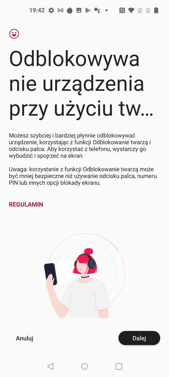 Czytnik linii papilarnych został umieszczony pod ekranem, ale moim zdaniem trochę za nisko. Jest jednak szybki i celny, choć nie jest cały czas aktywny. Trzeba najpierw wziąć telefon w dłoń. Szybko i sprawnie działa z kolei odblokowanie za pomocą skanu twarzy. Jeśli tylko nie ma egipskich ciemności, odblokowanie tą metodą przebiega szybko i sprawnie.