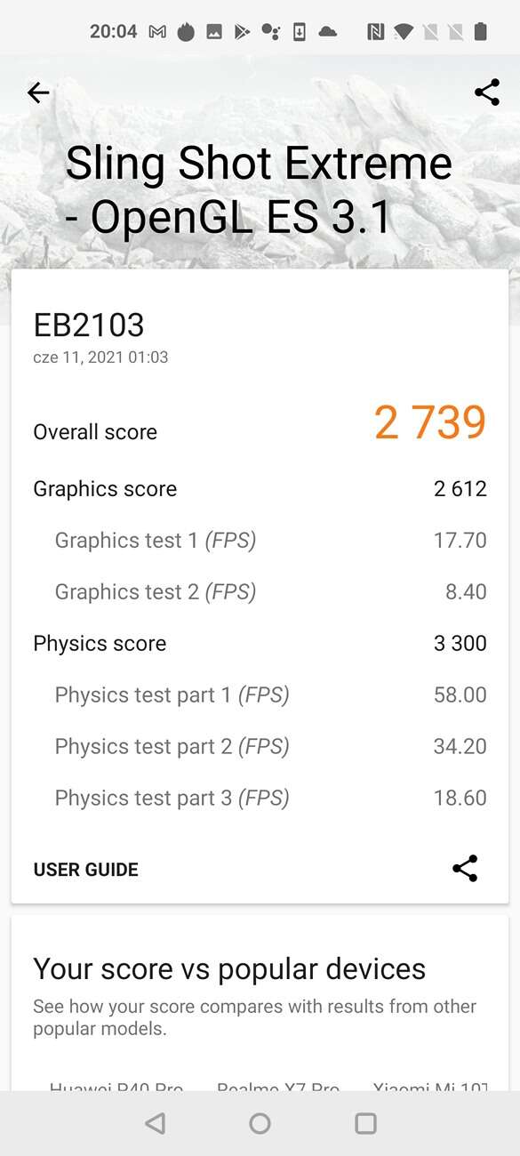 - 3D Mark (test Sling Shot Extreme) – 2739 (OpenGL ES 3.1)