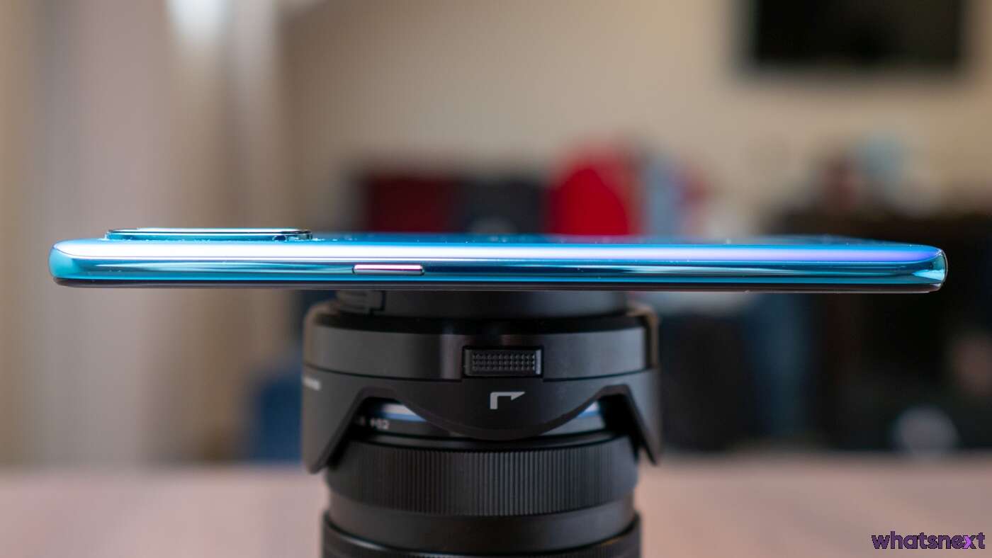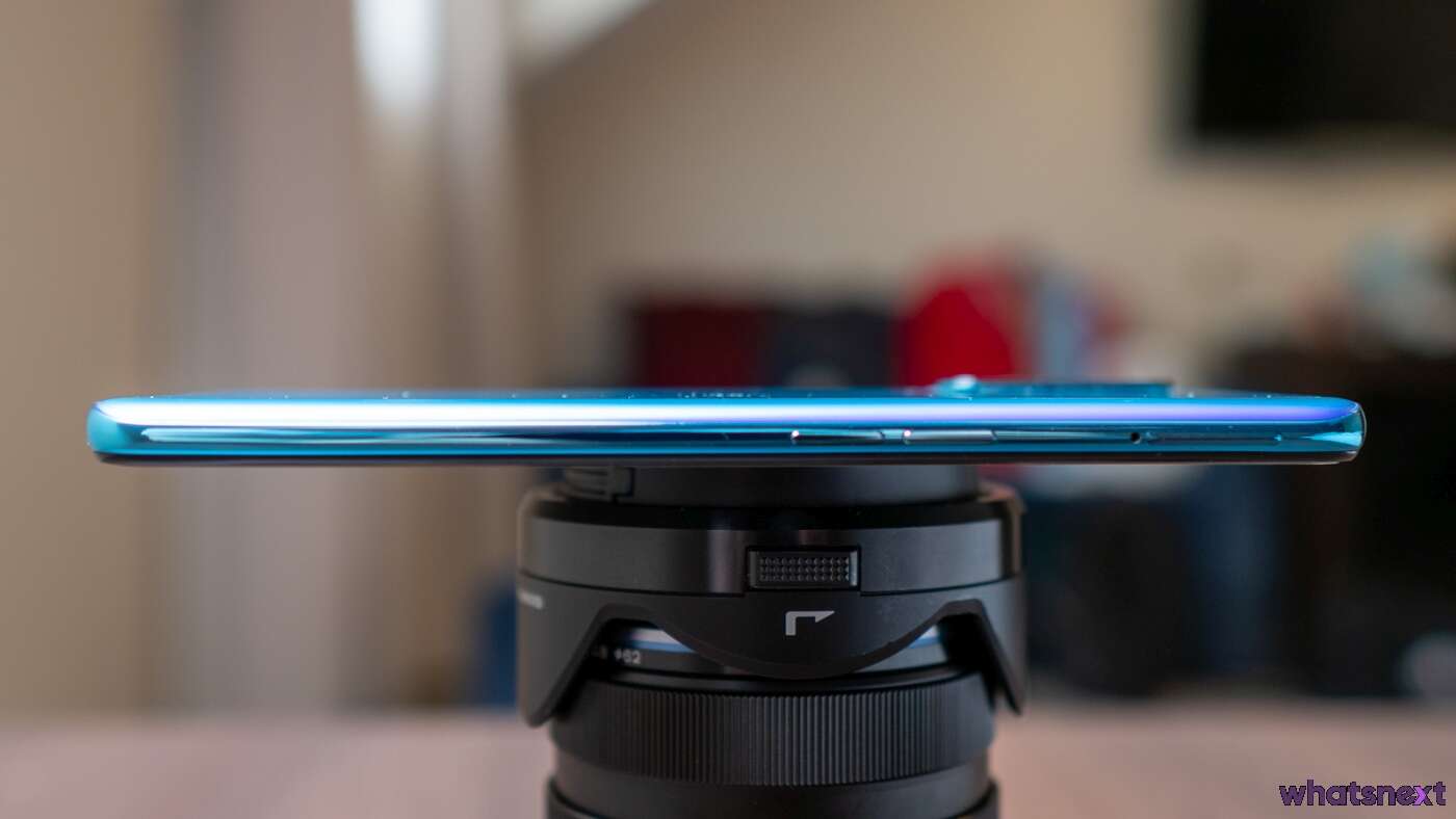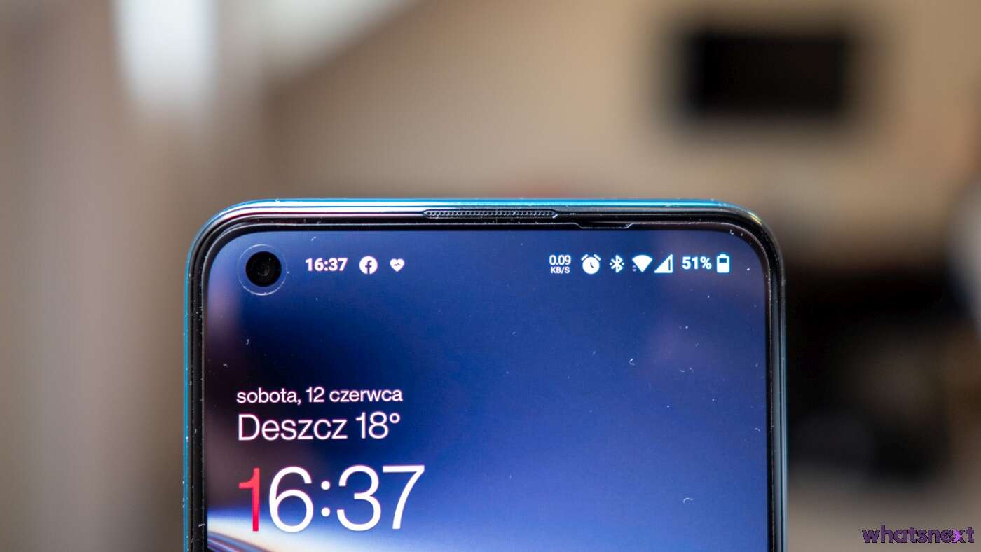 Wyświetlacz to 6,43 calowa matryca Fluid AMOLED o rozdzielczości 2400 x 1080 i 90 Hz częstotliwości odświeżania obrazu. Jest więc bardzo dobrze, ale nie wybitnie. Kolory są żywe i nasycone, rozdzielczość wystarczająca (410 ppi) o kąty widzenia – rewelacyjne. Warto dodać, że ekran jest całkowicie płaski, a o producencie szkła które go ochrania niestety za wiele nie wiadomo… W lewym górnym rogu umieszczono wycięcie na obiektyw przedniej kamery.