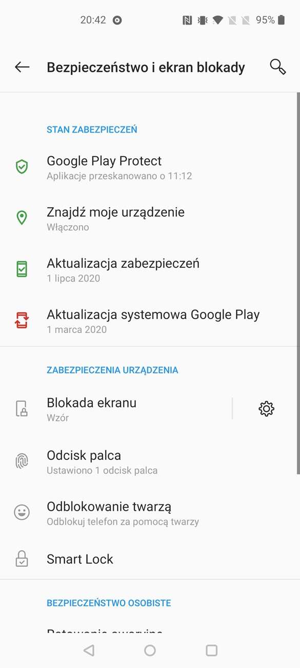 Oczywiście telefon możemy zabezpieczyć tylko standardowych kodem lub symbolem. Jest również zaimplementowana opcja Smart Lock.