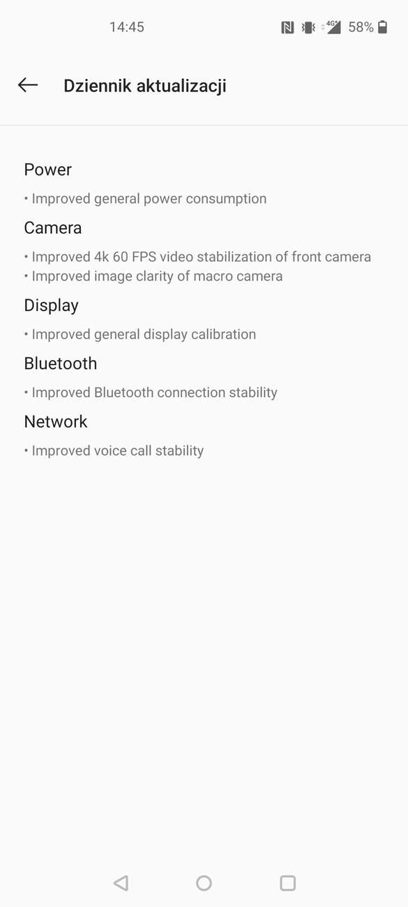 W ustawieniach poza możliwością włączenia 90 Hz odświeżania, możemy włączyć filtr światła niebieskiego (z regulacją jasności i temperatury barw), tryb czytania oraz zamaskować wcięcie na przednie kamery, wyświetlając obok nich czarny pasek. Nie zabrakło również Ambient display, czyli wyświetlania wybranych treści na wygaszonym ekranie.