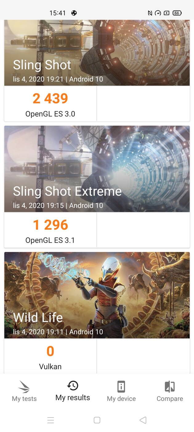 - 3D Mark Wild Life – 0 pkt (telefon nie spełniał wymogów testu)