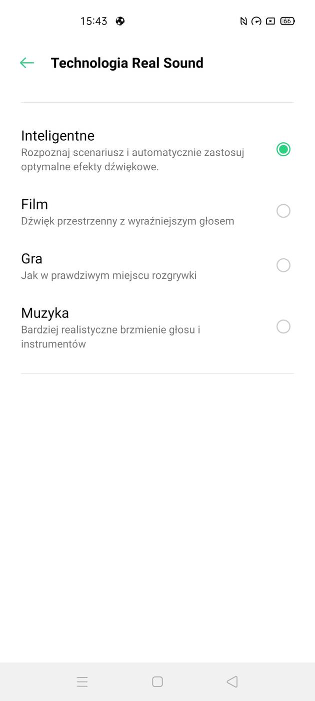 Na złączu słuchawkowym miniJack jest już jednak znacznie lepiej – narzekać można jedynie na przeciętną przestrzenność odbioru. W ustawieniach możemy włączyć technologię Real Sound, która w założeniach ma poprawiać jakość dźwięku. Czy poprawia? To zależy na jakich ustawieniach. Na pewno jednak zmniejsza maksymalny poziom głośności i umożliwia ręczną korekcję barwy dźwięku.