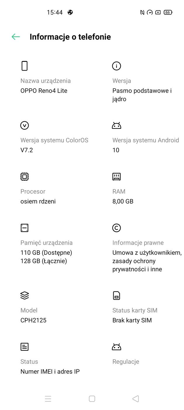 Oppo Reno 4 Lite działa na Androidzie 10 z nakładką systemową ColorOS 7.2. Całość działa płynnie, a nakładka jest dość rozbudowana.
