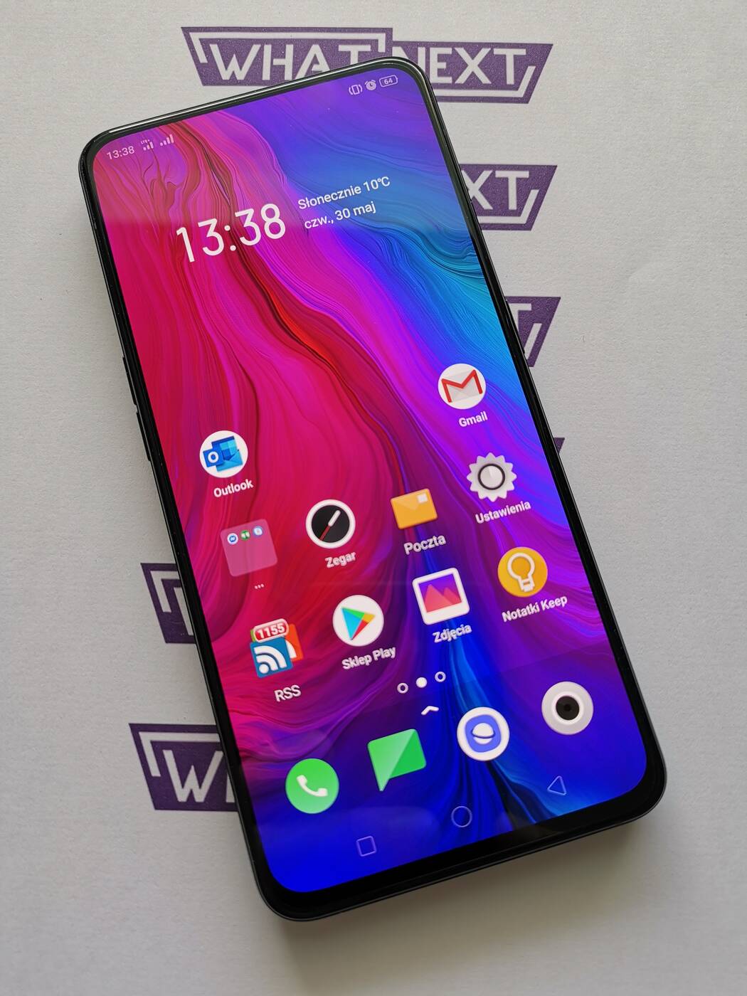 Urządzenie działa pod kontrolą Androida 9.0 – Pie wraz z autorską nakładką ColorOS. W porównaniu do poprzednich modeli producenta nakładka awansowała z wersji 5.2 do pełnej wartości 6.0. Wiąże się z odczuwalną poprawą i tak wysokiej funkcjonalności oraz wzrostem optymalizacji całego systemu. Przede wszystkim zniknął problem z brakiem notyfikacji części aplikacji. Jest o tyle istotne, że z racji ograniczonego miejsca na froncie urządzenia zabrakło diody powiadomień, więc łatwo było przeoczyć istotne dla nas zdarzenia, szczególnie że uboższa wersja „Always On Display” nie bardzo chciał pokazywać istotne notyfikacje. W obecnej wersji nakładki wszystko działa tak jak potrzeba.