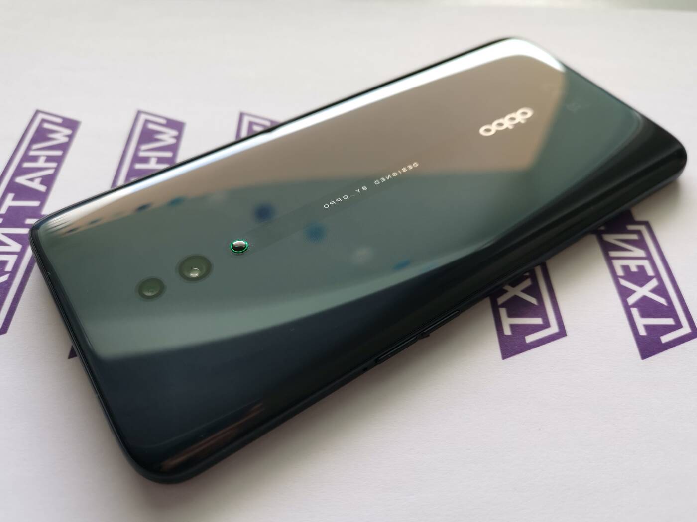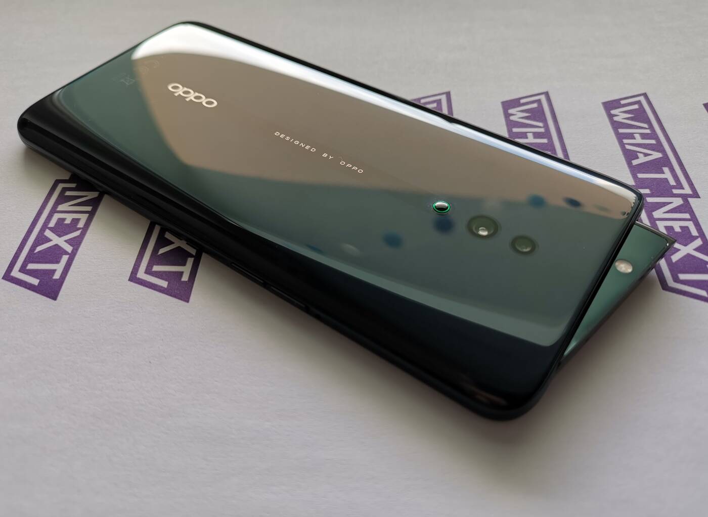 Producent stawia na oryginalne i dość odważne rozwiązania konstrukcyjne, zwłaszcza ruchome elementy obudowy. OPPO Reno w przeciwności do swojego poprzednika (model Find X) ma tylko jeden taki element: mechanicznie wysuwany przedni obiektyw umiejscowiony na charakterystycznej trójkątnej platformie, przypominającej górną płetwę morskiego drapieżnika. Pozostałe aparaty fotograficzne znajdują się standardowo na plecach urządzenia, tylko lampa błyskowa powędrowała na ruchomy element, podobnie jak głośnik do rozmów. Taki zabieg miał na celu zmaksymalizowanie przestrzeni przeznaczonej na ekran urządzenia.