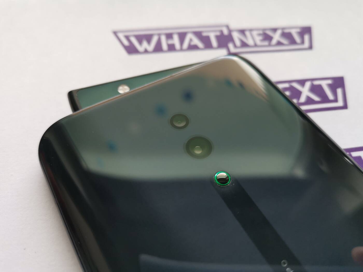 Całość stanowi zwartą konstrukcję o opływowych kształtach, tylna powierzchnia jest również gładka, a obiektywy nie wystają ponad obrys obudowy. Co ciekawe przed przypadkowym porysowaniem ich powierzchni chroni ceramiczna i utwardzana wypustka „O-dot” delikatnie odstająca od obudowy, umiejscowiona tuż pod głównymi aparatami fotograficznymi. Dodatkowy element zabezpieczający wysuwany moduł, stanowią czujniki ruchu, działające w sposób mocno zachowawczy. Wystarczy delikatne podrzucenie urządzenia w dłoni, aby uruchomić awaryjne zamknięcie mechanizmu i zobaczyć komunikat o niekontrolowanym upadku.