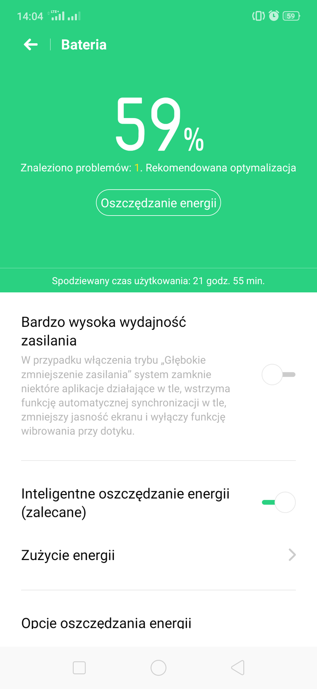 Akumulator OPPO Reno był w stanie zapewnić zasilanie przez około 31 godzin od momentu odłączenia go od ładowarki, przy założeniu, że nie muszę się w żaden sposób ograniczać (Dual SIM, LTE + łączność bezprzewodowa oraz pełna synchronizacja danych). Jak na baterie Li-Po o pojemności 3765 mAh można było spodziewać się trochę lepszych wyników. Pewnym wyróżnikiem w przypadku tego producenta będzie szybkie ładowanie 20 W (VOOC 3.0). Niestety nie jest ono tak spektakularne, jak poprzednia generacja (Super VOOC) z racji zastosowania pojedynczej baterii, a nie łączonej, jak miało to miejsce w modelach poprzednich. Stąd też pełne naładowanie trwa znacznie dłużej – około 70 minut (przy wykorzystaniu ładowarki z kompletu). Szkoda, że producent zapomniał o możliwości ładowania bezprzewodowego.