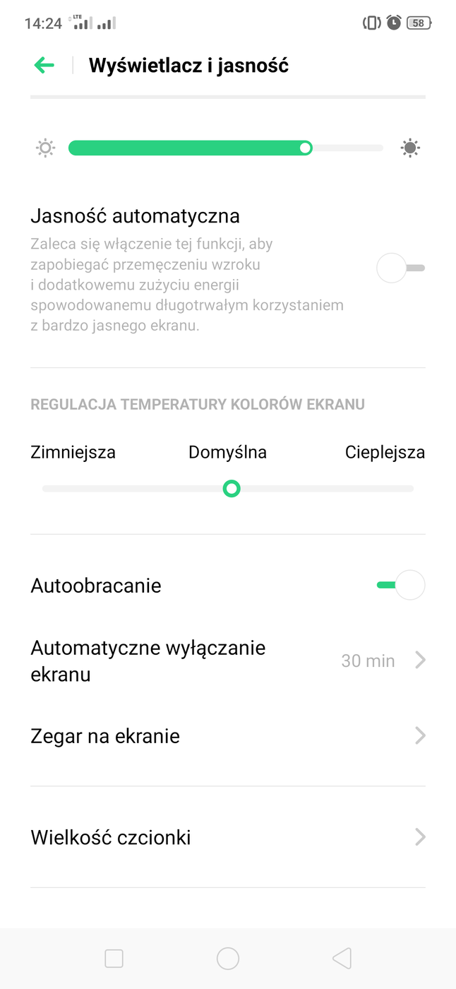 Trzeba przyznać, że bardzo podoba mi się profesjonalne podejście producenta do jakości stosownych wyświetlaczy. Polityka firmy zakłada montowanie matryc AMOLED-owych nawet w budżetowych modelach. W końcu wyświetlacz stanowi jeden z najważniejszy aspektów każdego urządzenia. Ekran, jaki znalazł się w modelu RENO, to 6,4-calowy AMOLED o rozdzielczości 1080 x 2340 pix i proporcjach 19,5:9. Całość ochrania szkło Corning Gorilla Glass 6, a dzięki minimalizacji ramek i pozbyciu się przedniego aparatu, wyświetlacz stanowi aż 93,1% powierzchni urządzenia. Jak łatwo się domyślić, odwzorowanie kolorów przy zastosowaniu jednej z lepszych matryc stoi na wysokim poziomie, podobnie jak kontrast i kąty widzenia. Maksymalna jasność zapewnia klarowny obraz w pełnym słońcu, choć częściowo razi w ciemnych pomieszczeniach przy minimalnych wartościach. Tu z pomocą przychodzi regulacja temperatury poszczególnych kolorów, a także funkcja „Night Shield” zmniejszająca natężenie światła niebieskiego i opcja komfortowego czytanie w nocy bez obawy o utratę wzorku. Co ciekawe możemy także skorzystać z całkowitego trybu monochromatycznego.