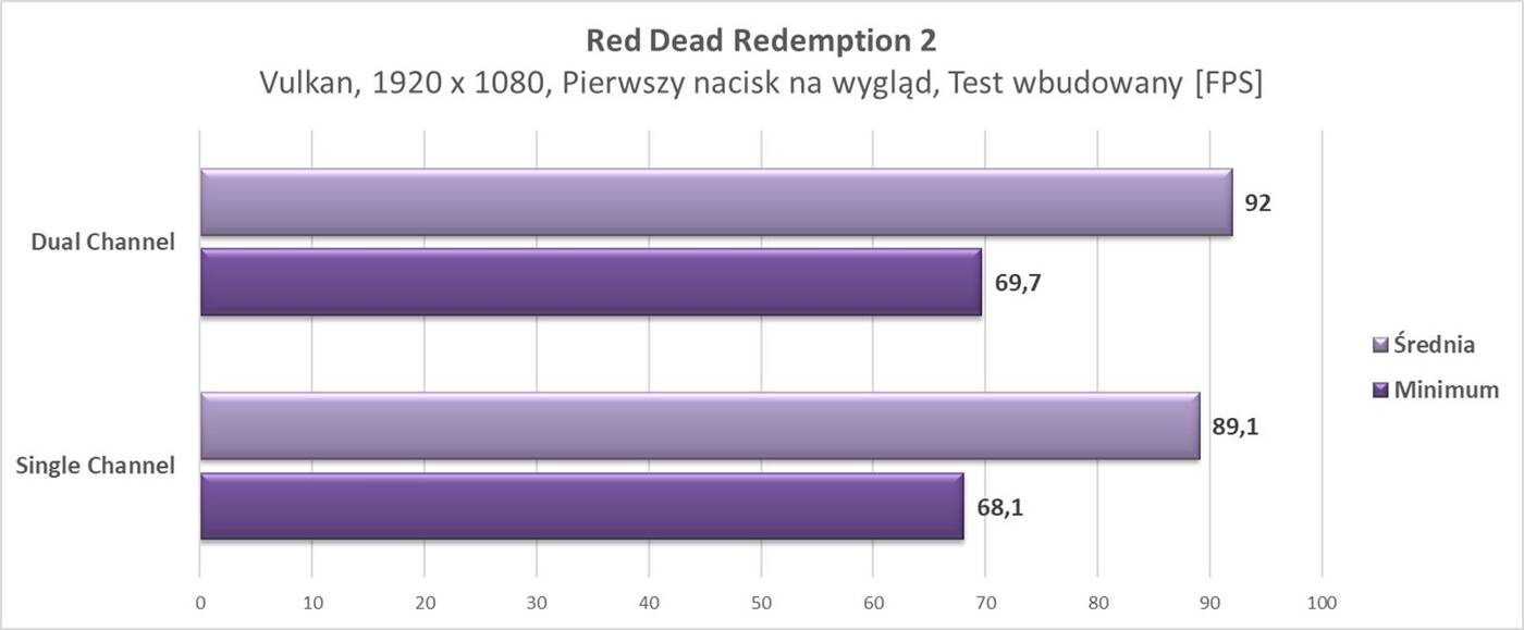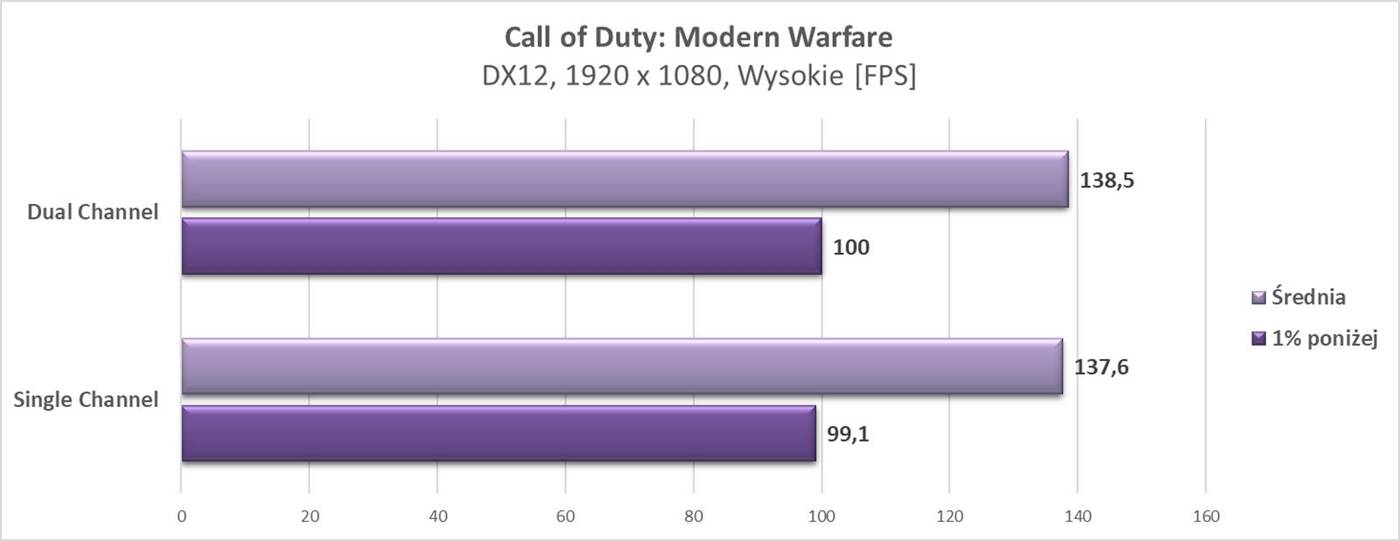 Po drugiej stronie są takie tytuły jak Zombie Army 4, Call of Duty: Modern Warfare czy Red Dead Redemption 2, gdzie różnice są naprawdę znikome. W tych tytułach w zasadzie możemy mówić o braku większego zysku z pamięci działających w trybie Dual Channel i nie ma co się przejmować jej konfiguracją. Takich tytułów jest jednak mniej niż w drugą stronę.