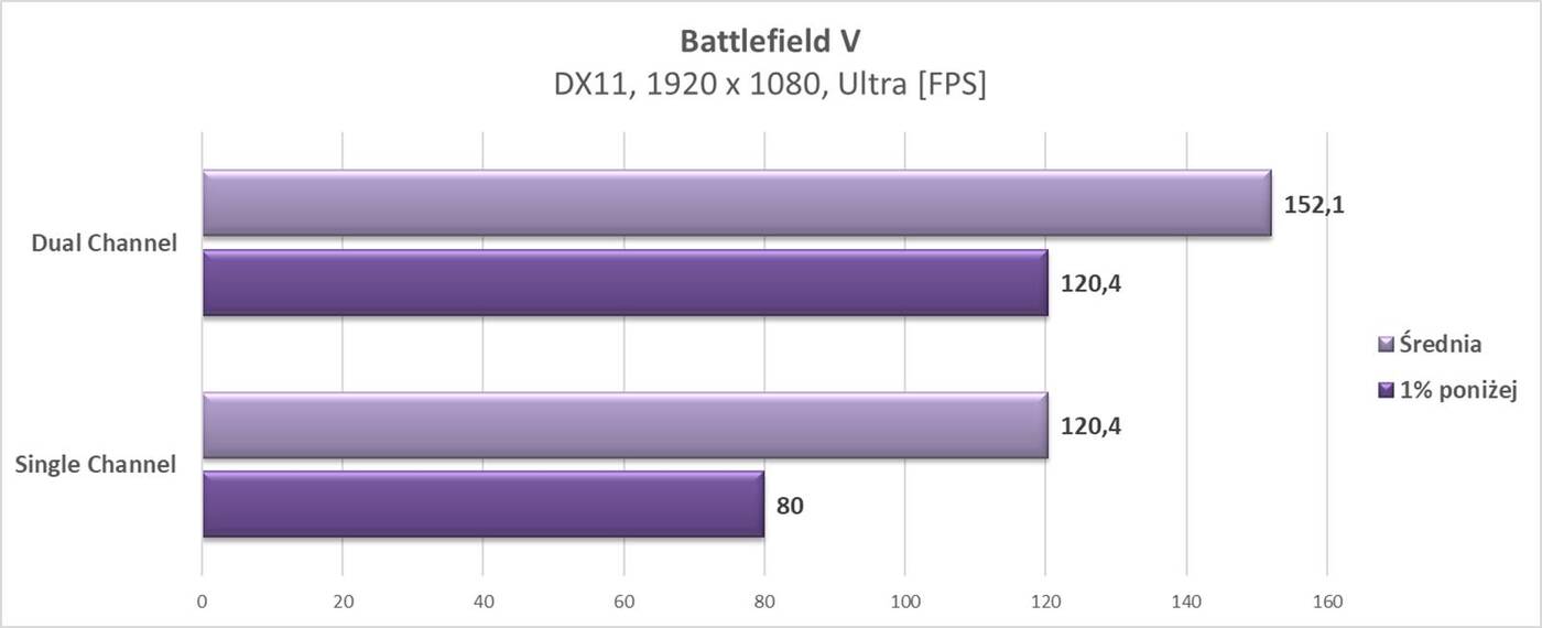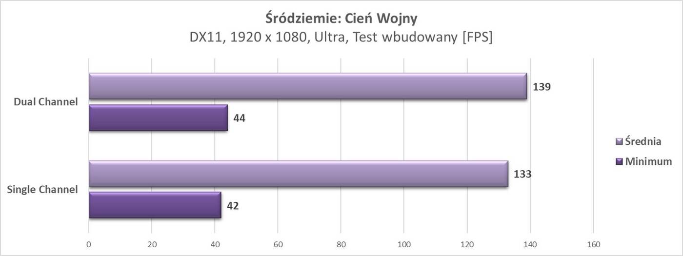 Tryb Dual Channel gwarantuje średnio o 11,1% więcej fps niż Single Channel. Ale są to mocno uśrednione wyniki – w zależności od gry potrafią być one skrajnie różne.