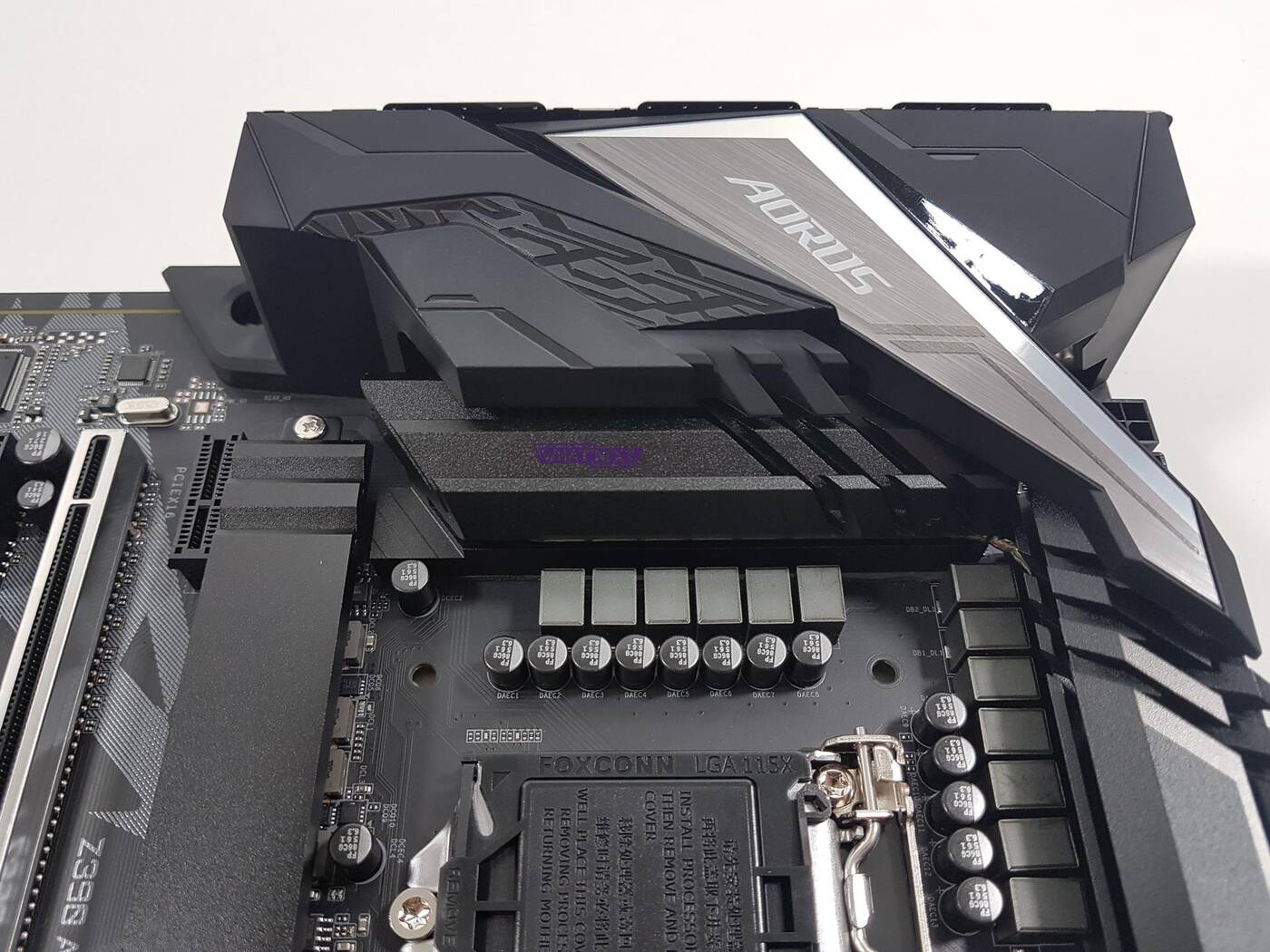 Płyta Aorus oferuje sześć złączy Sata 6 Gb/s oraz dwa M.2 (jedno 2242/2260/2280/22110 i jedno 2242/2260/2280). Dyski można połączyć w RAID 0, 1, 5, 10. Wspiera ona także Intel Optane. Na płycie znajduje się również dodatkowe złącze M.2 gotowe do obsługi Intel Wireless-AC (CNVi). Liczba wejść na dyski jest więc standardowa i dla każdego powinna wystarczyć. Warto też wspomnieć, że płyta posiada dołączony radiator na obydwa dyski M.2. Zastosowana karta sieciowa to Intel GbE LAN (10/100/1000 Mbit) a karta muzyczna to Realtek ALC1220-VB. Ta druga jest już dobrej klasy i powinna zapewnić przyzwoite doznania muzyczne.