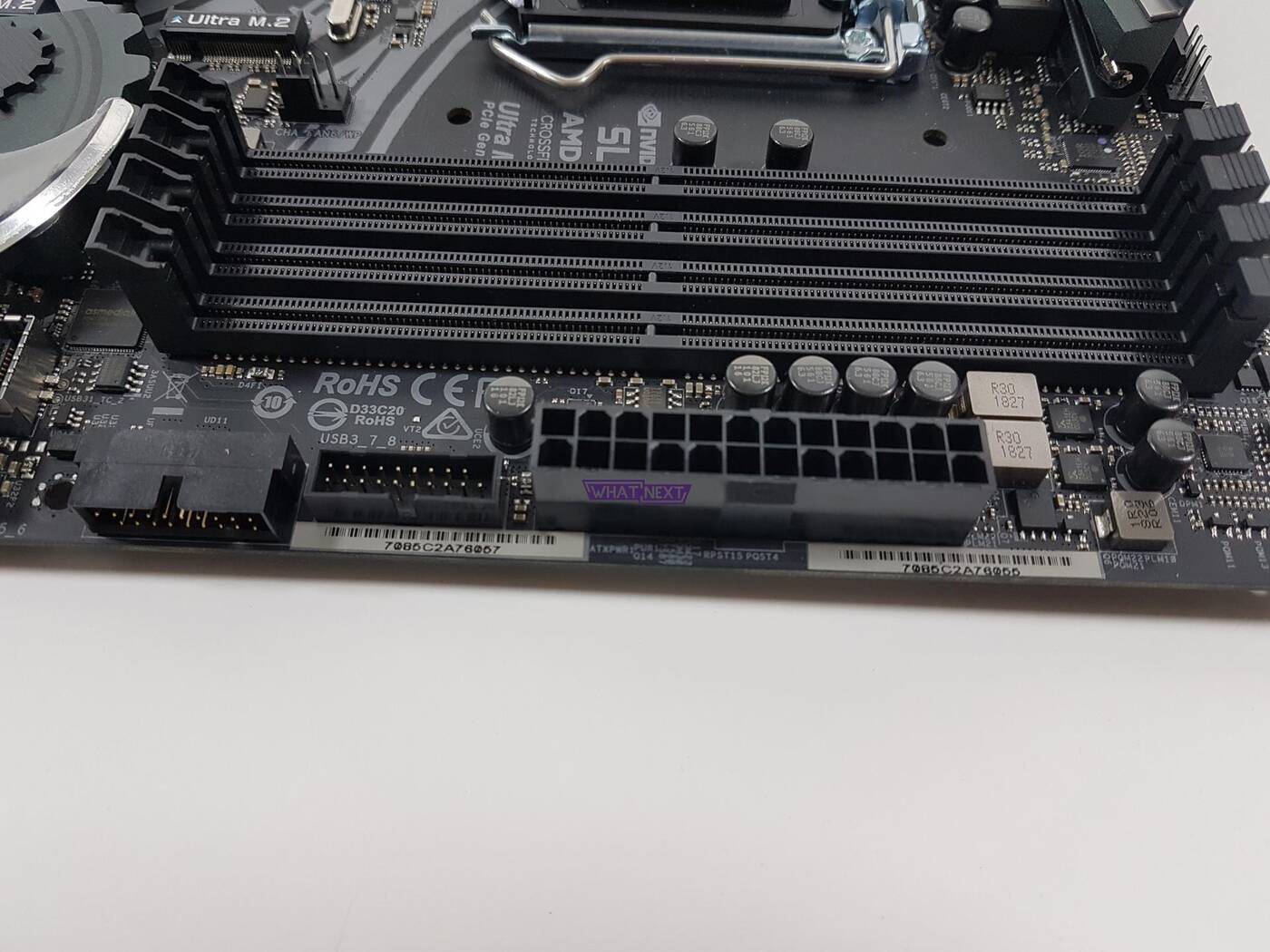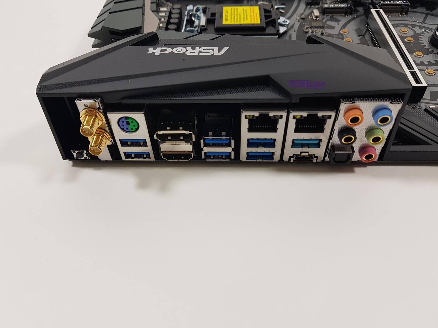 Z tyłu ponownie mamy do dyspozycji mnóstwo złączy. Idąc od góry producent umieścić przycisk do resetowania BIOSu, dwa złącza na anteny, dwa USB 3.1 Gen 1, PS/2, HDMI, DisplayPort 1.2, dwa USB 3.1 Gen 1, trzy USB 3.1 Gen 2, jedno USB 3.1 Gen 2 Type-C , dwa RJ-45, SPDIF i sześć od karty muzycznej. Ilość złączy jest ogromna i cieszy tak duża ilość nowych USB. Na pewno Wasz sprzęt podłączony sprzęt nie będzie ograniczany.
