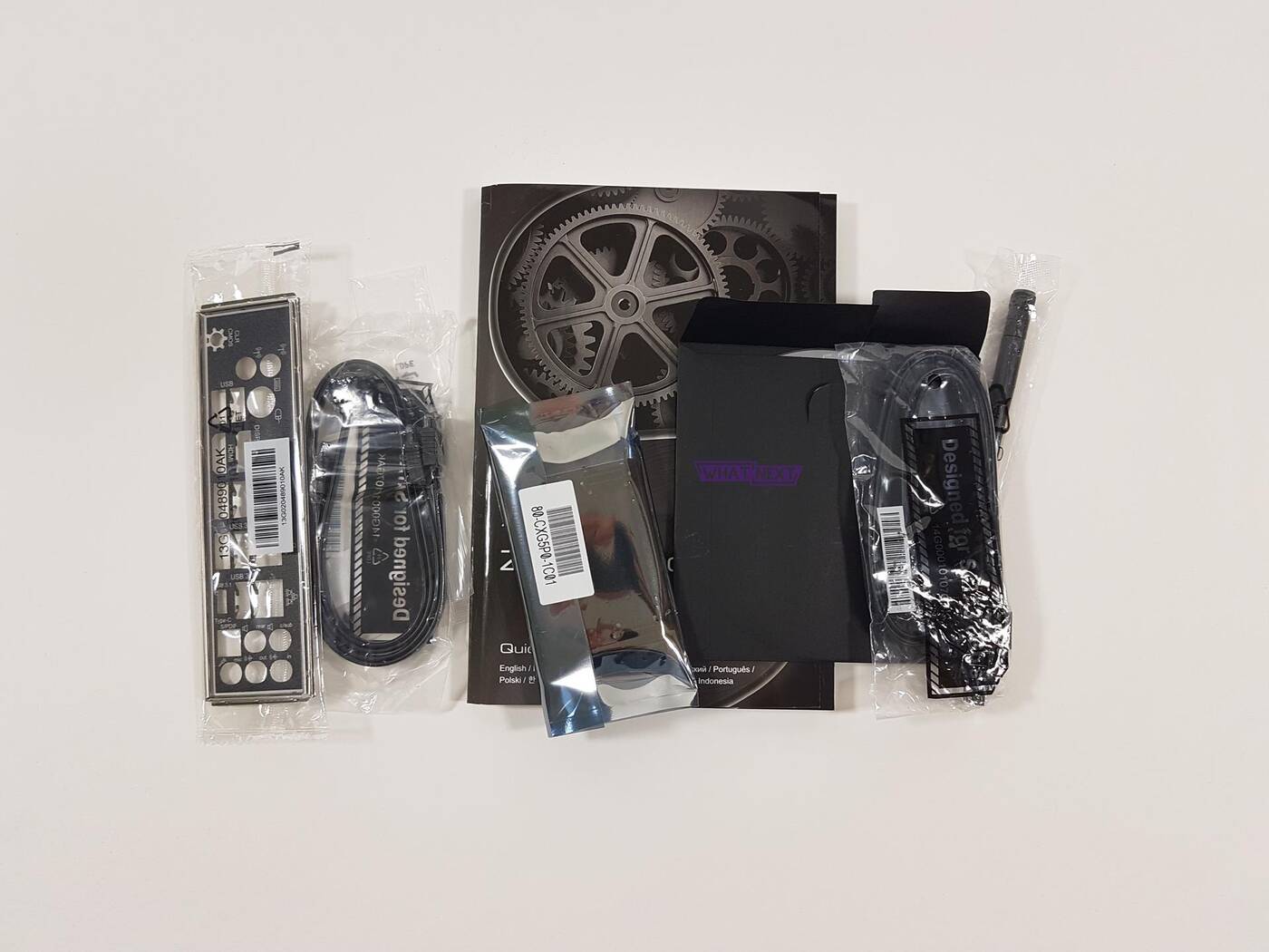Płyta zapakowana została w czarny karton. Wraz z nią otrzymujemy cztery kable SATA, mostek SLI, anteny WIFi, śrubki do dysków M.2 oraz instrukcję czy płytę ze sterownikami. Dodatki są wiec standardowe, ale cieszą dwa kable SATA. Gwarancja wynosi 36 miesięcy.