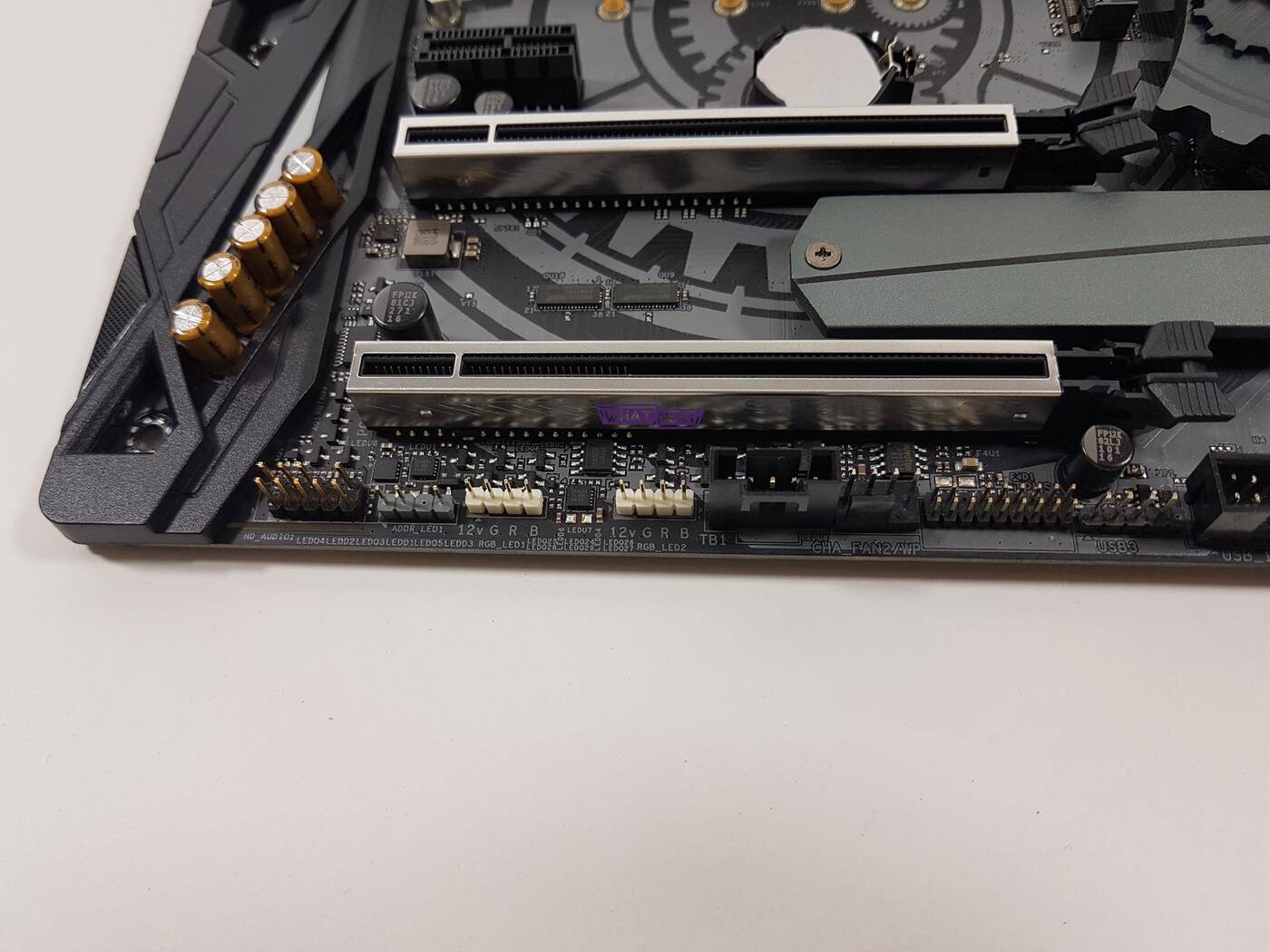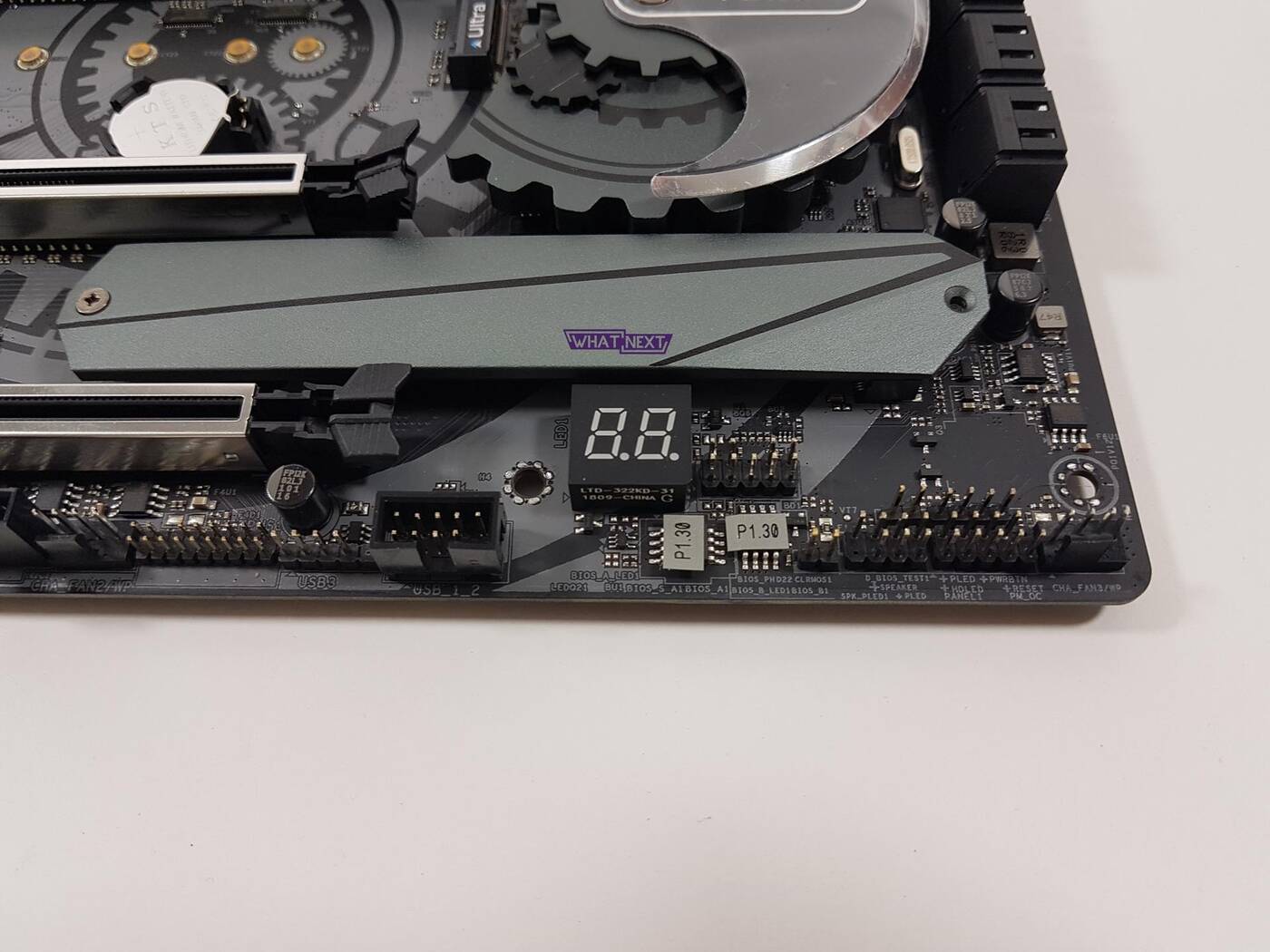 Na płycie znajduje się sporo różnych złączy. Są dwa miejsca do montażu urządzeń RGB LED, jedno LED 15W, jedno CPU 4 pin, jedno CPU/ pompka 4 pin, sześć na wentylatory od płyty głównej, złącze Thunderbolt, dwa USB 2.0, dwa USB 3.1 Gen1, jedno USB Type-C. Nie zabrakło też Dr. Debug, czyli wyświetlacza pokazującego kody POST. Na pewno ułatwi to detekcję błędów podczas problemów z komputerem.