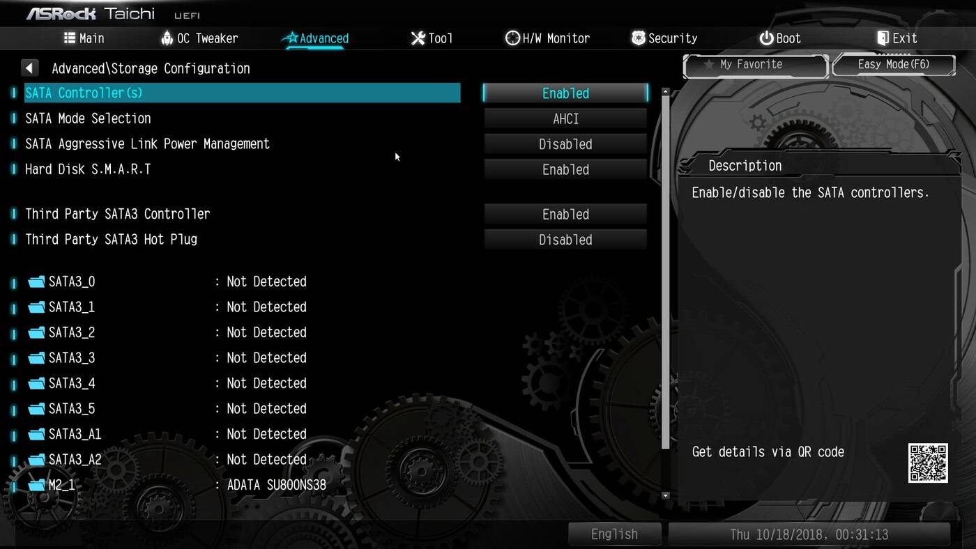 Z390 Taichi umożliwia montaż do 6 dysków SATA3 6 Gb/s, które można połączyć w RAID 0, RAID 1, RAID 5, RAID 1. dostępne są też dwa złącza SATA 3 6 Gb/s stworzone przez ASMedia ASM1061. Płyta ma też dwa złącza M.2 2230/2242/2260/2280/22110, z których jedno ma dołączony radiator. Nie zabrakło też trzeciego złącza M.2 2230/2242/2260/2280. Wszystkie wspierają moduły PCI Express.