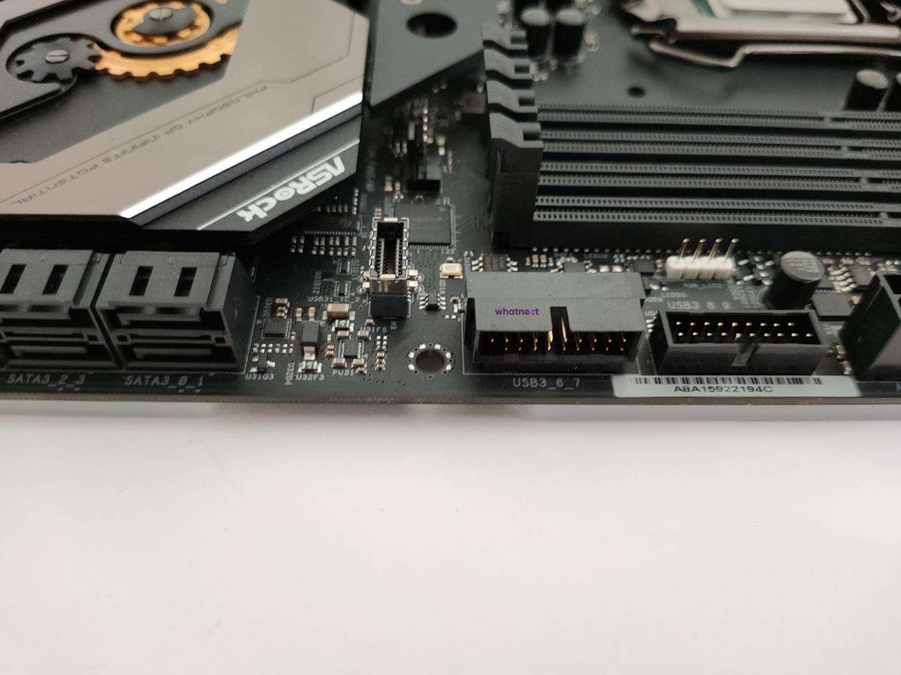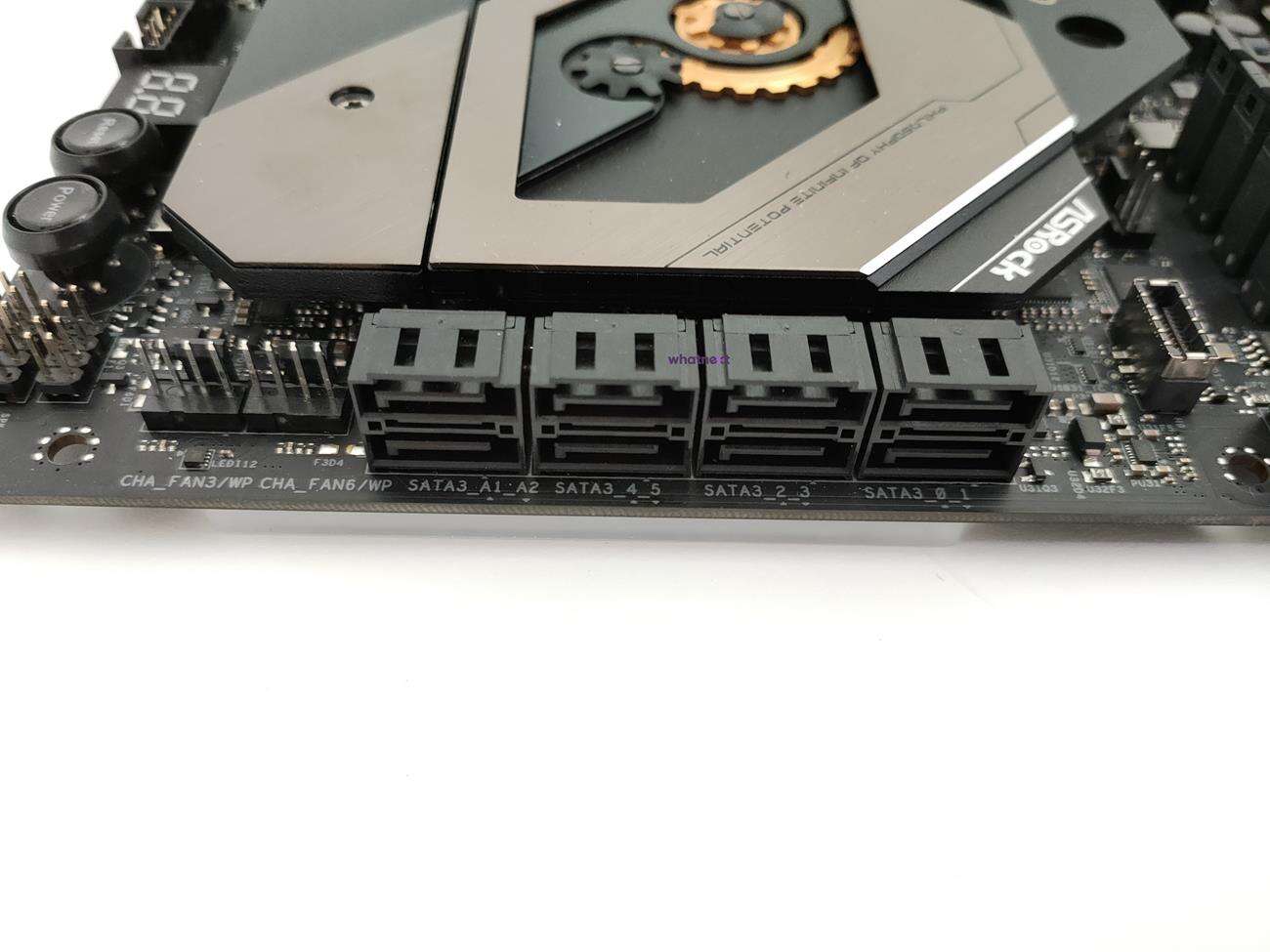 Na płycie znajdują się trzy sloty M.2 – 2280, 2260/228 oraz 2230/2242/2260/2280/22110. Każdy z nich obsługuje PCI-E Gen3 x4, ale pierwszy od góry jest nieaktywny. Jest naklejka informująca, że został on zarezerwowany dla przyszłych generacji procesorów – coś jak w przypadku płyty Aorus. Każdy ze slotów ma radiatory, co jest sporym plusem. ASRock Z490 Taichi oferuje też sześć złączy SATA, które wspierają RAID 0, 1, 5 i 10.