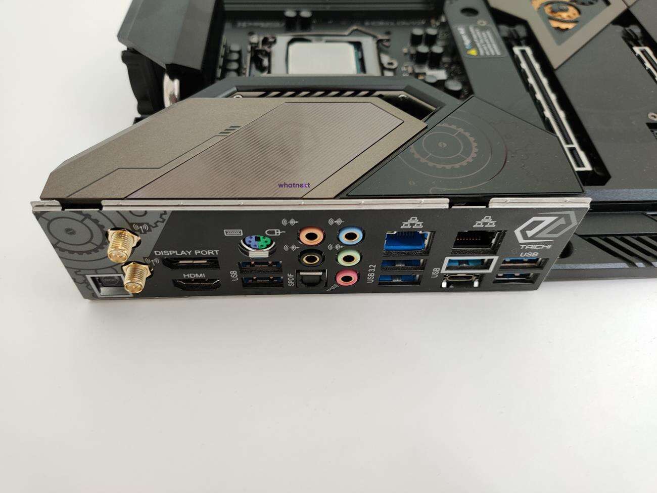 Tylny panel również jest bogaty w różne złącza. Zacznę jednak od przycisku do szybkiego i łatwego flashowania BIOS bez procesora. Poniżej są dwa wyjścia na antenę WiFI oraz złącze HDMI czy DisplayPort (wreszcie płyta z tym złączem!). ASRock Z490 Taichi ma złącze PS/2, które moim zdaniem jest zbędne. Są też dwa złącza USB 3.2 Gen2, jedno USB 3.2 Gen2 Type-C, pięć USB 3.2 Gen 1, dwa RJ-45, S/PDIF oraz 5 audio. Co ciekawe złącza audio nie są jak zwykle na samym dole, ale pośrodku. Moim zdaniem ilość złączy jest bardzo dobra i nie mam się czego tutaj przyczepić.