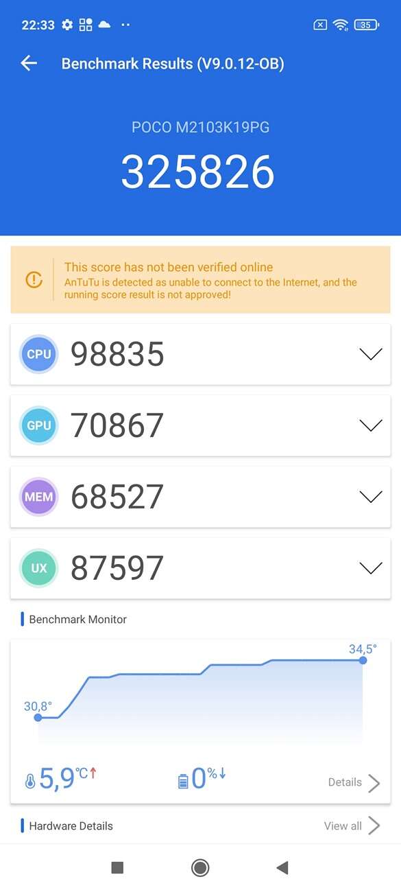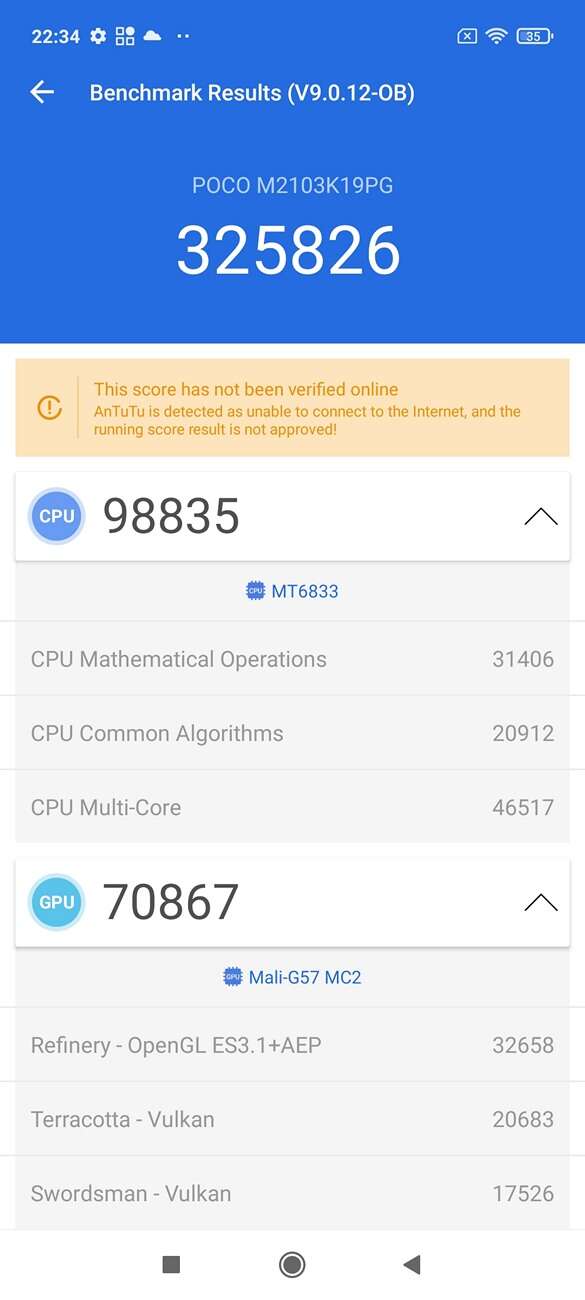 Smartfon został wyposażony w procesor MediaTek Dimensity 700 wraz z grafiką Mali-G57 MC2 oraz 4 lub 6 GB pamięci RAM. Pozwala to osiągać przyzwoite rezultaty w benchmarkach, porównywalne np. do tych z realme 8 5G (nasz test – TUTAJ), który kosztuje porównywalne pieniądze. Niemniej należy zaznaczyć, że w tej cenie możemy kupić wydajniejsze smartfony.