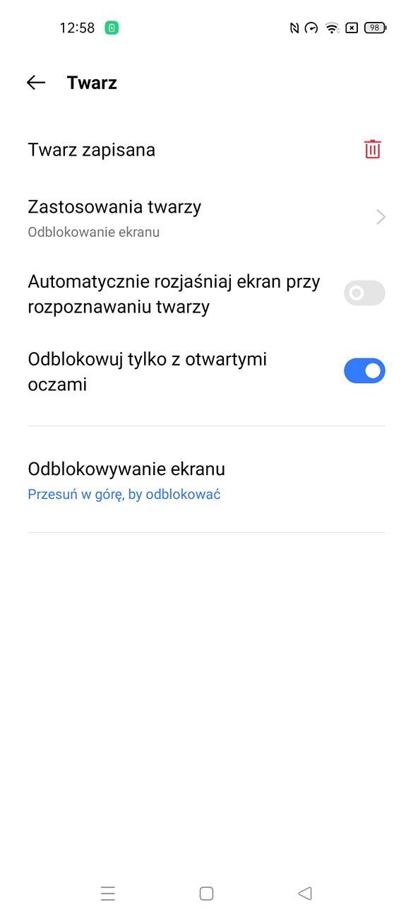 Odblokowanie za pomocą skanu twarzy działa równie szybko i precyzyjnie, a na dodatek posiada zabezpieczenie przed odblokowaniem urządzenia przy otwartych oczach. Niestety, nie da dodać się drugiego skanu twarzy, ani skanu twarzy w maseczce.