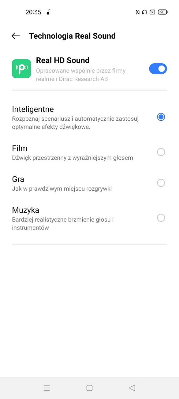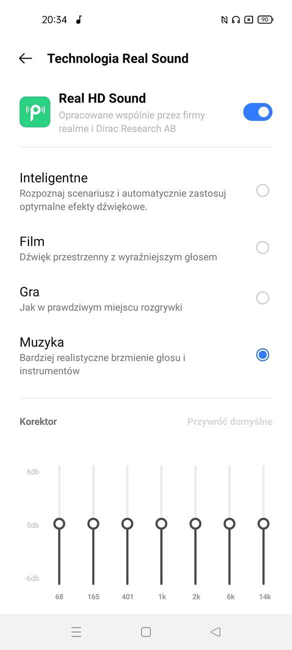 Z kolei jakość dźwięku na słuchawkach jest dość przeciętna, dopóki nie włączymy Real Sound. Po włączeniu poprawia się bas i znika piskliwość wysokich tonów. Pojawia się również możliwość skorzystania z manualnego equalizera.