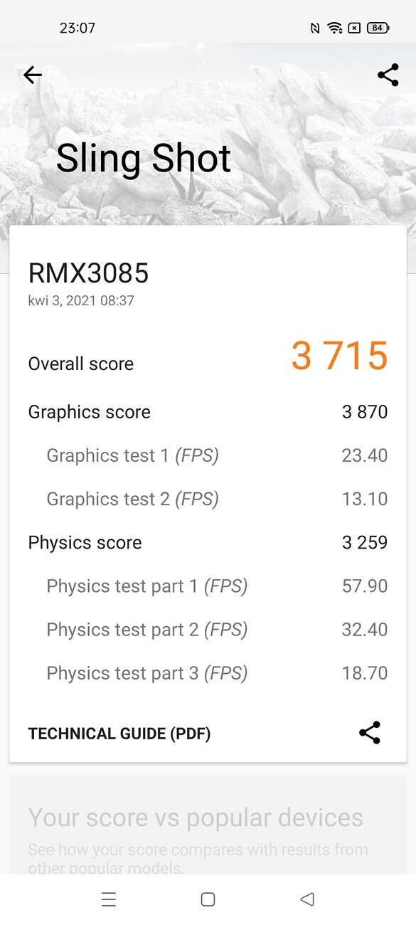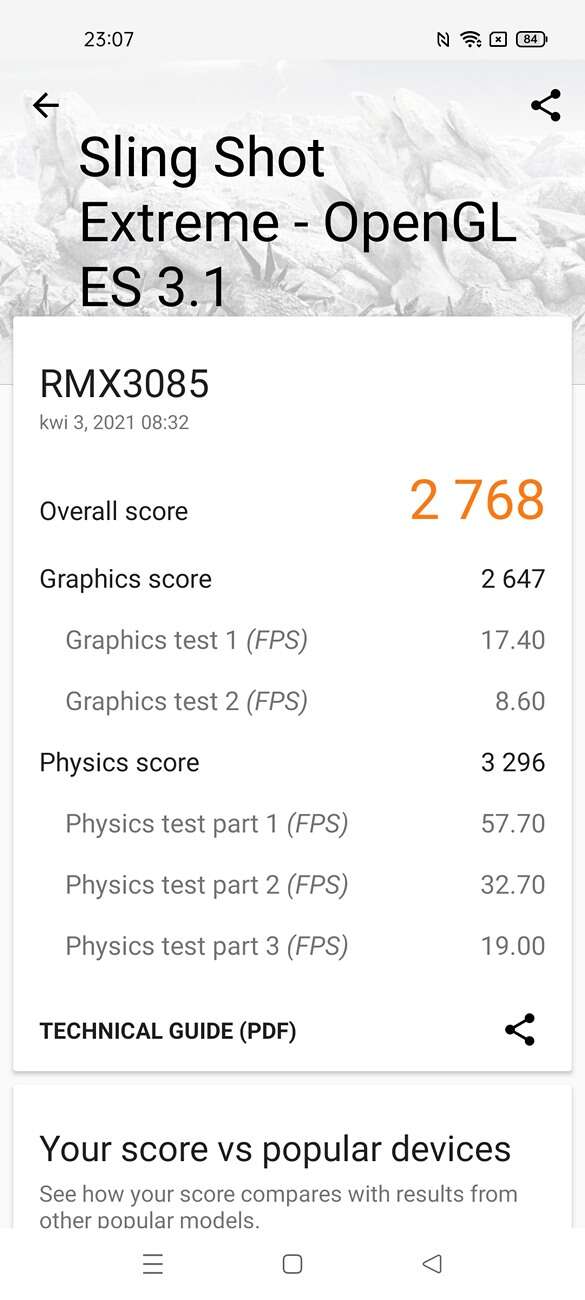 Smartfon został wyposażony w procesor MediaTek Helio G95 wraz z grafiką Mali-G76 i nie byłoby w tym nic złego, gdyby nie to, że dokładnie taki sam zestaw mogliśmy znaleźć już w … Realme 7 (nasz test – TUTAJ). Jeśli chodzi o czystą wydajność, na wyraźny postęp liczyć nie możemy. Jednak dzięki lepszej optymalizacji oprogramowania, niewielki wzrost osiągów jest dostrzegalny.