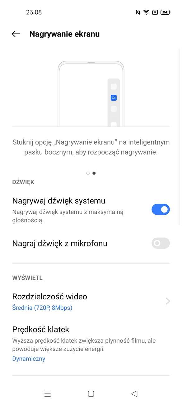 Na wyposażeniu jest więc oczywiście tryb ciemny dla menu, możliwość edycji przycisków dotykowych oraz rozbudowaną obsługę gestów. Jest również m.in. Always on Display oraz praktyczna możliwość wybudzenia urządzenia dwu-klikiem. Możemy ponadto nagrywać to, co się dzieje na ekranie w rozdzielczości 1080 p i bitrate 16 Mb/s (wraz z dźwiękiem). Niestety, nadal nie ma obsługi motywów.