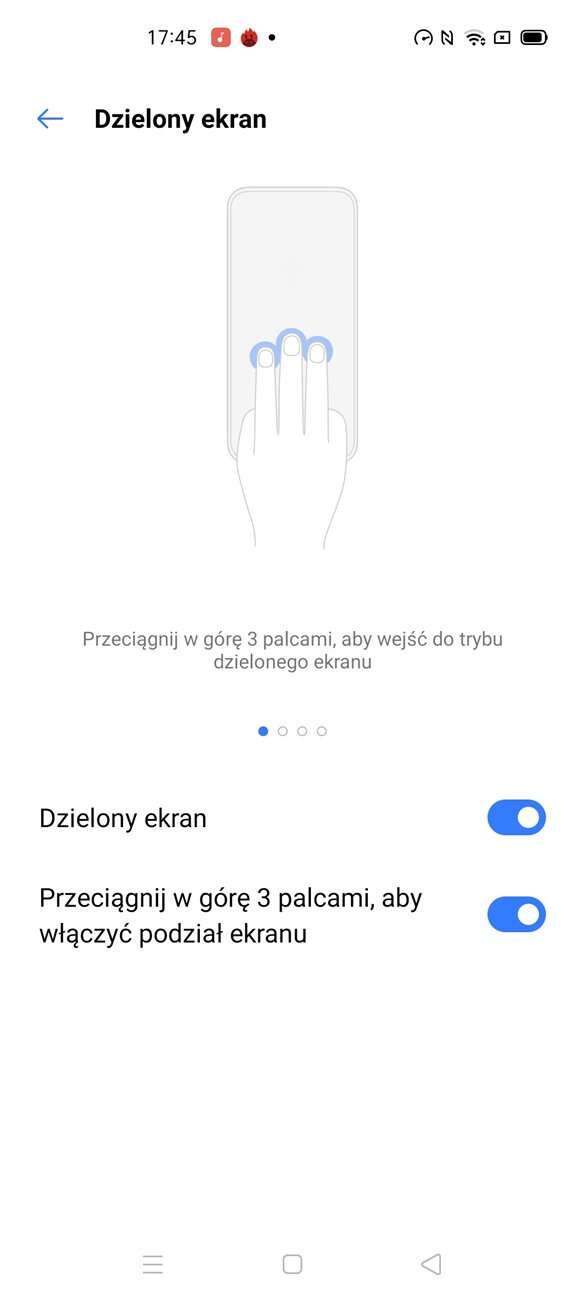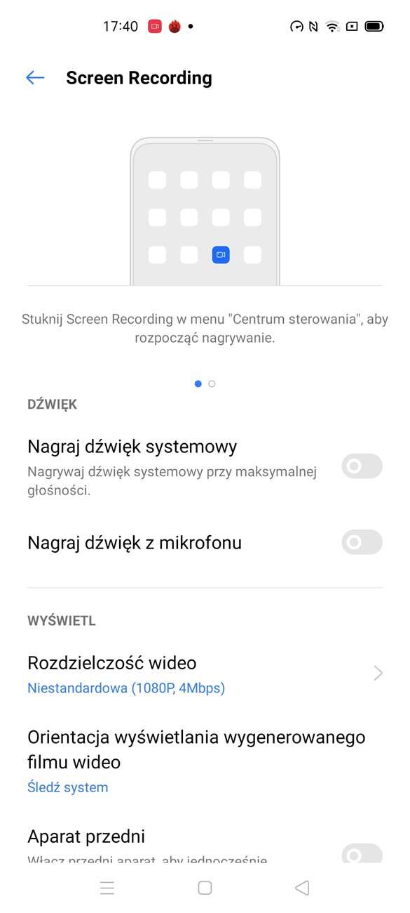 W kwestii funkcjonalności – mamy obsługę gestów, motywy, tryb ciemny dla menu oraz możliwość edycji przycisków dotykowych u dołu ekranu. Nie zabrakło możliwości włączenia szuflady na aplikacje, jak również zablokowania urządzenia dwu-klikiem. Ponadto możemy nagrywać to, co się dzieje na ekranie w rozdzielczości 1080 p przy maksymalnym bitrate 16 Mb/s wraz z dźwiękiem (wartość bitrate i rozdzielczość możemy regulować). Do naszej dyspozycji zostaje ponadto oddany pasek z ulubionymi aplikacji i funkcjami systemu, który wysuwamy gestem z krawędzi ekranu.