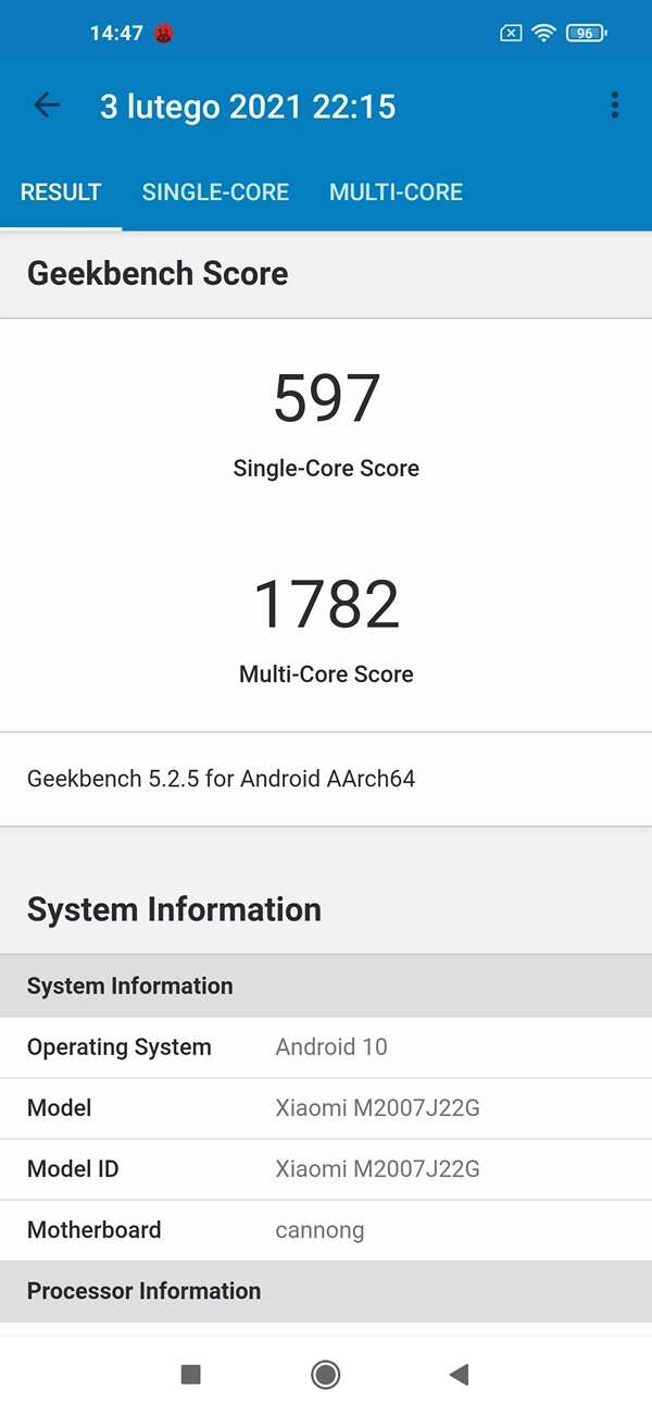 Smartfon działa w oparciu o Androida 10 wraz z nakładką MIUI w wersji 12.0.1. Pisząc o potrzebie aktualizacji nie mam (o dziwno) na myśli upgrade do Androida 11, a o stabilności obecnego systemu. A ten potrafi być kapryśmy – niejednokrotnie aplikacje, również te wbudowane, potrafiły się zawieszać. Co prawda nie było wtedy konieczności restartowania telefonu, ale częstotliwość występowania tej przypadłości każe wykluczyć przypadek. W dodatku niektóre aplikacje (np. 3D Mark) miały problemy z połączeniem się z internetem. Mam nadzieję, że zostanie to poprawione w aktualizacjach.