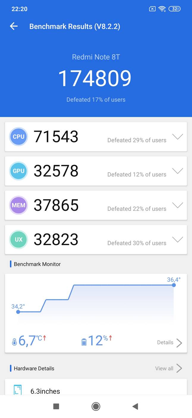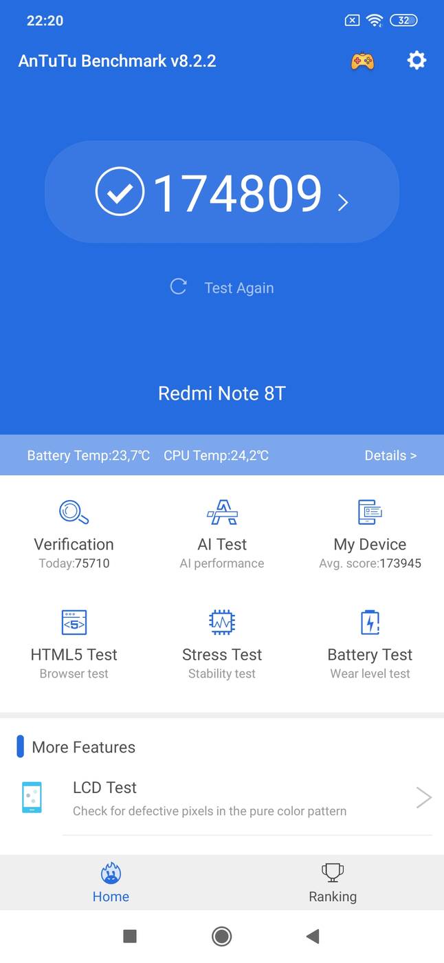 - Antutu Benchmark 8.2.4 – 174 809 pkt