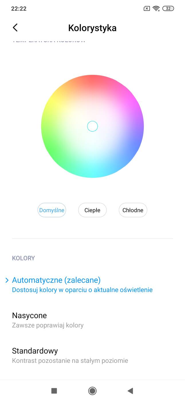 W ustawieniach znajdziemy filtr światła niebieskiego, tryb ciemny (dla menu) oraz możliwość regulacji kontrastu i temperatury barwowej. W ograniczonym zakresie, ale jednak.