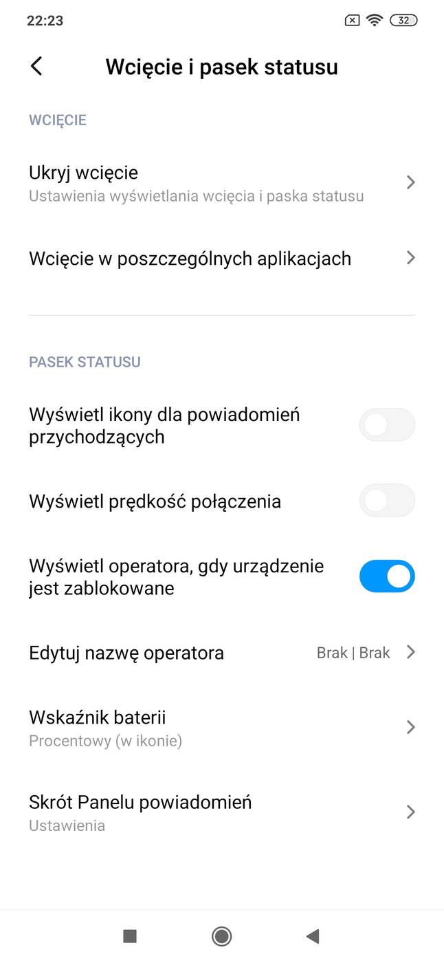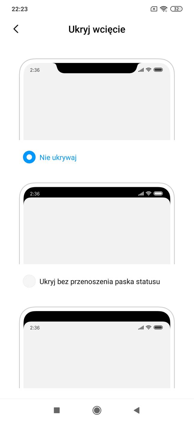 Ponadto istnieje możliwość programowego „ukrycia” wcięcia w ekranie na przednią kamerę.