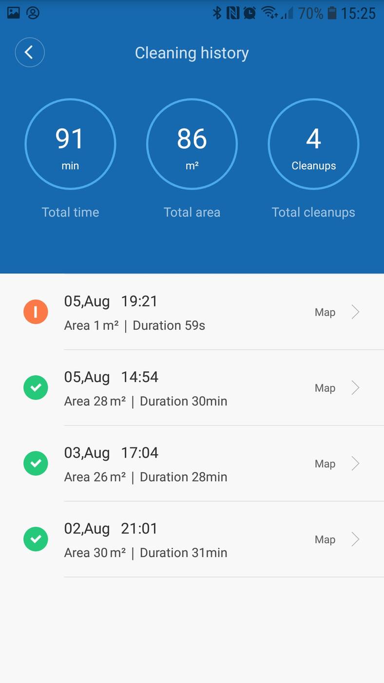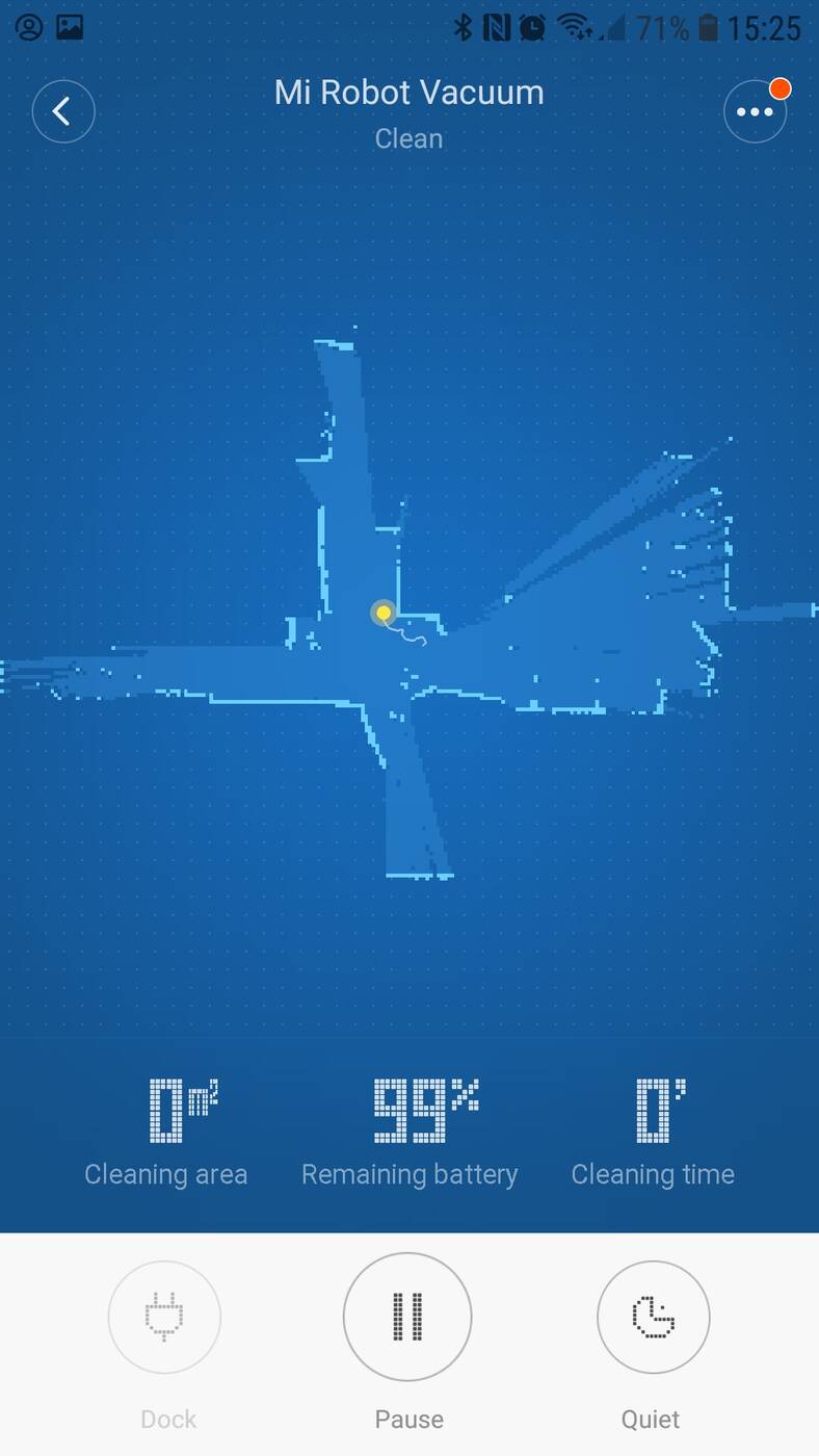 Aplikacja to Mi Home i teoretycznie powinna szybko pozwolić na synchronizację z odkurzaczem. Piszę teoretycznie, bowiem na starcie miałem kilka problemów. Aby z niej skorzystać należy się zarejestrować. Istnieje opcja rejestracji przez Facebook, ale z niewiadomych przyczyn miałem w niej błąd i dopiero za 3 razem zaskoczyło. Także samo łączenie odkurzacza z routerem udało się za 3 czy 4 razem – wcześniej nie potrafiło urządzenie tego dokonać. Gdy już przez to przebrniemy, to możemy skorzystać z dobroci aplikacji. Dzięki niej można planować, kiedy Mi Robot Vacuum ma samemu działać, podglądać zmapowane pomieszczenia oraz przebytą trasę, ustawić jego moc czy wejść w tryb ręczny. Ten ostatni jest moim ulubiony i pozwala na samodzielne sterowanie odkurzaczem. Oprócz tego jest historia czy możliwość łatwego zaktualizowania oprogramowania odkurzacza. Świetną rzeczą jest pokazywanie zmapowanych pomieszczeń – od razu widać czy coś zostało pominięte i jak robot sobie poradził. Można także zmieniać tryb pracy odkurzacza pomiędzy trybami Quiet, Blanaced, Turbo a Full Speed Aplikacja też czasami się zacina, chodzi topornie i ocena 2,9 na Google Play mówi sama za siebie. Powinna zostać ona zaktualizowana i znacznie poprawiona – w szczególności jej płynność. Ostatnia ważna rzecz – nie posiada ona języka polskiego.