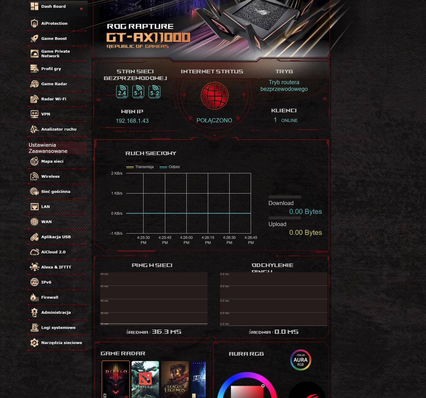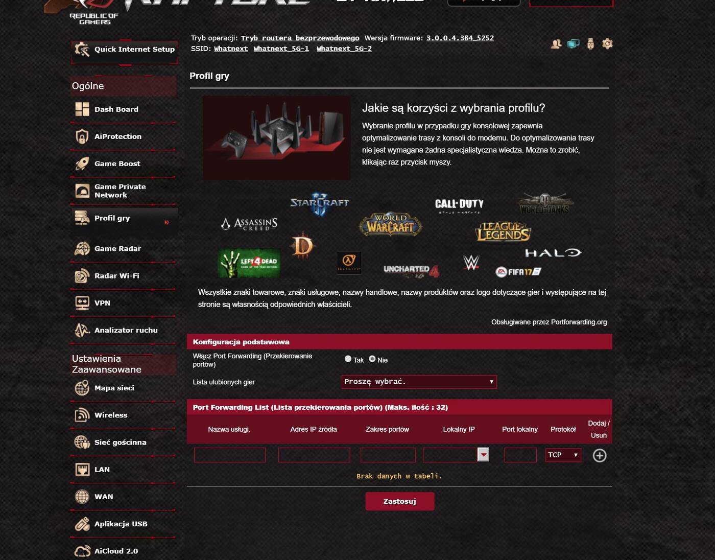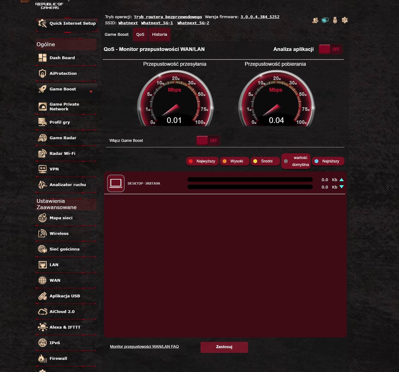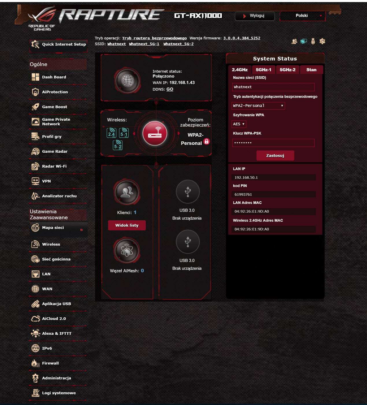 Przy pierwszym uruchomieniu łatwo przechodzimy przez konfigurację. Możemy wtedy włączyć wybrane funkcje, nazwać sieci czy wpisać hasło. Potem poprzez stronę router.asus.com mamy dostęp do sprzętu. Opcji jest naprawdę mnóstwo. Umożliwiają one ustawienie praktycznie wszystkiego co byśmy chcieli – od ustawiania wszelkich wcześniej wspomnianych opcji po różne statystyki. Router powinien więc po dłuższej konfiguracji idealnie dopasować się do Waszych wymagań.