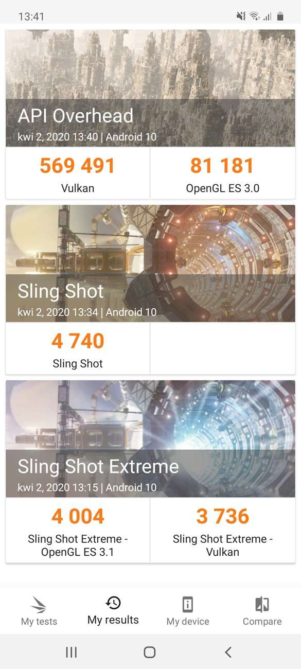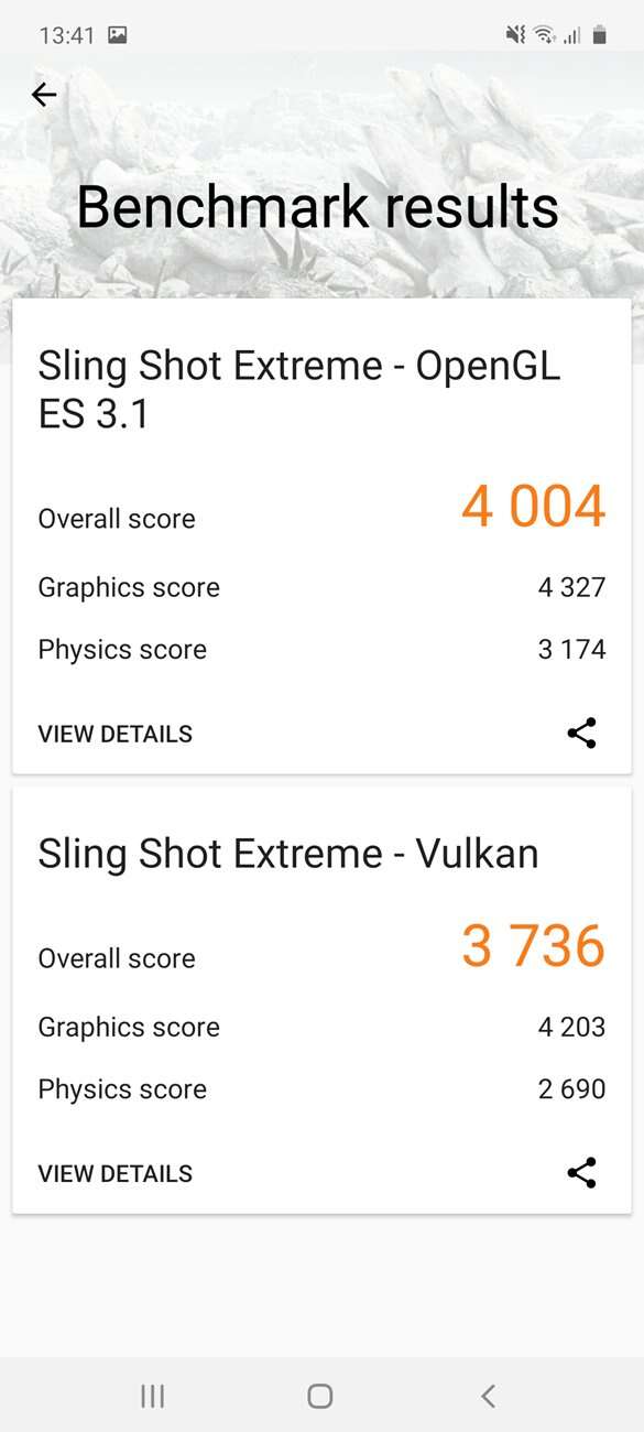 - 3D Mark (test Sling Shot Extreme) – 4004 pkt (OpenGL ES 3.1), 3736 pkt (Vulkan)