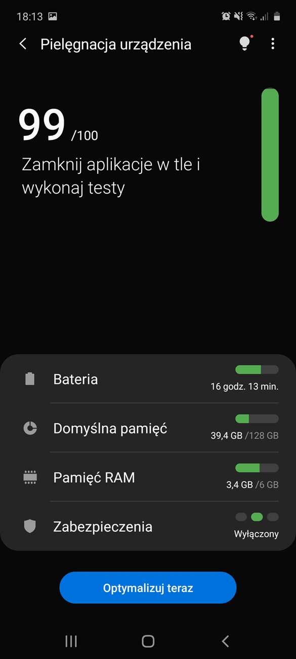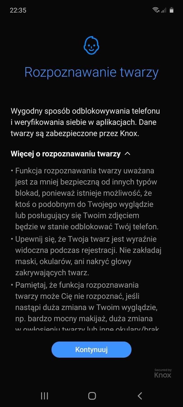 O czytniku linii papilarnych pod ekranem zdążyło krążyć w sieci wiele negatywnych opinii, ale po kilku aktualizacjach systemu nie jest już źle. Nadal proces dodawania odciska palca trwa długo, ale później działa on już całkiem szybko i sprawnie. Średnio 8 na 10 prób jest udanych. Oczywiście może (i powinno) być jeszcze lepiej. Odblokowanie za pomocą skanu twarzy jest równie celne – 8 na 10 prób, ale już zdecydowanie wolniejsze. Oczywiście oba zabezpieczenia mogą funkcjonować jednocześnie.