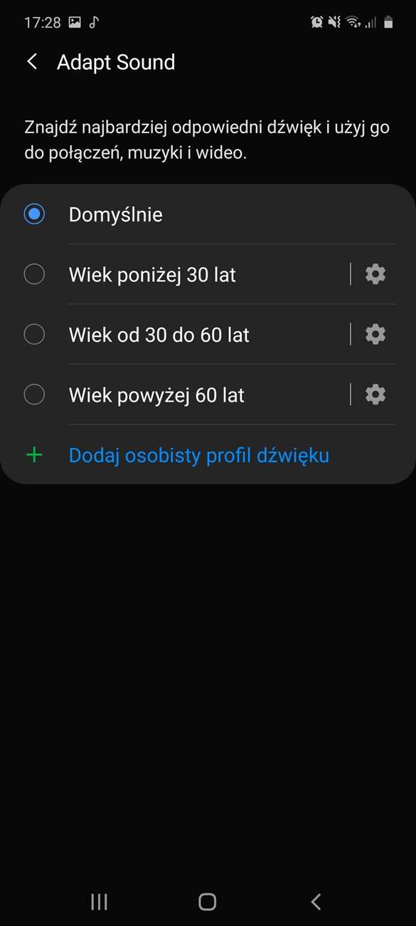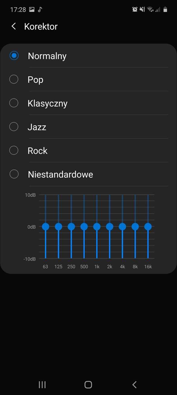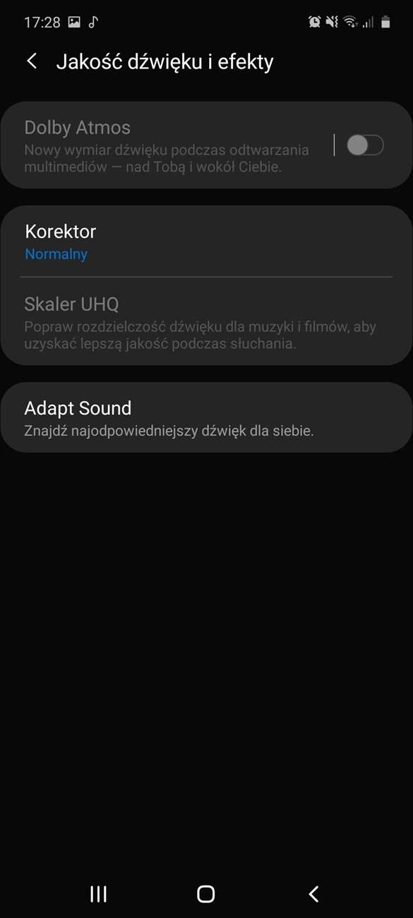W ustawieniach znajdziemy klasyczny korektor dźwięku, ale też Dolby Atmos, mający poprawiać jego jakość. W praktyce sprawdza się on przeciętnie, podobnie jak funkcja Adapt Sound, która ma dostosowywać barwę dźwięku do wieku słuchacza. Różnica jest słyszalna, ale moim zdaniem najlepszy dźwięk uzyskamy z wyłączonymi ulepszaczami. Bardzo podobnie zresztą sytuacja wyglądała w Samsung Galaxy A51 (recenzja TUTAJ).