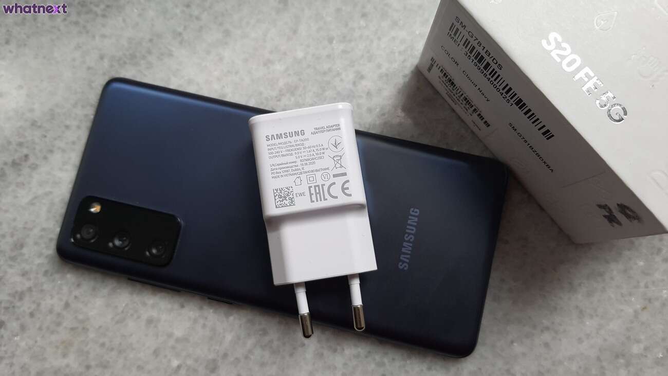 Tradycyjnie dla Samsunga w pudełku nie znajdziemy ani etui, ani folii na ekran, ani żadnych innych tego typu dodatków. Jest za to m.in. ładowarka z czego (o zgrozo) trzeba się cieszyć, patrząc na zawartość pudełka Iphonie 12 i plotki o planach producenta na rok 2021.