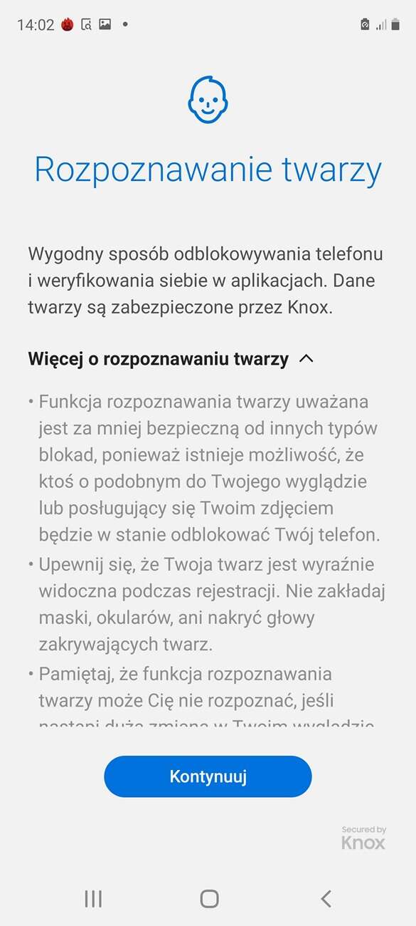 Czytnik linii papilarnych został umieszczony u dołu ekranu i w mojej ocenie – zbyt nisko. Jest jednak cały czas aktywny, celny i działa szybko. Jeśli chodzi o odblokowanie skanem twarzy, to wszystko zależy od typu oświetlenia. Niejednokrotnie w ciemnych pomieszczeniach działał on lepiej, niż przy jasnej, ciepłej żarówce, w przypadku, kiedy skanowałem twarz w zimnym świetle. Być może zostanie to poprawione w aktualizacjach. Odblokowanie za pomocą hasła lub symbolu tradycyjnie nie nastręcza żadnych problemów.