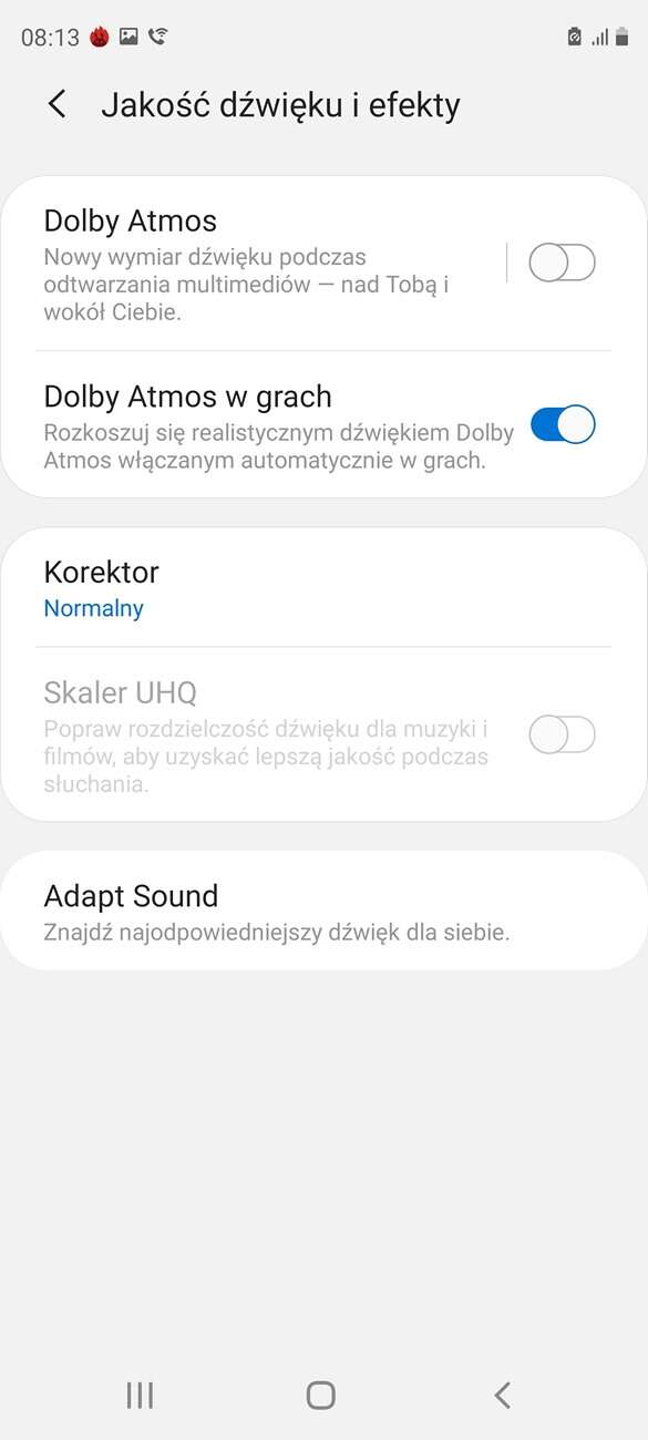 Tak czy siak smartfon wspiera technologię Dolby Atmos, a w ustawieniach znajdziemy też manualny korektor barwy dźwięku.