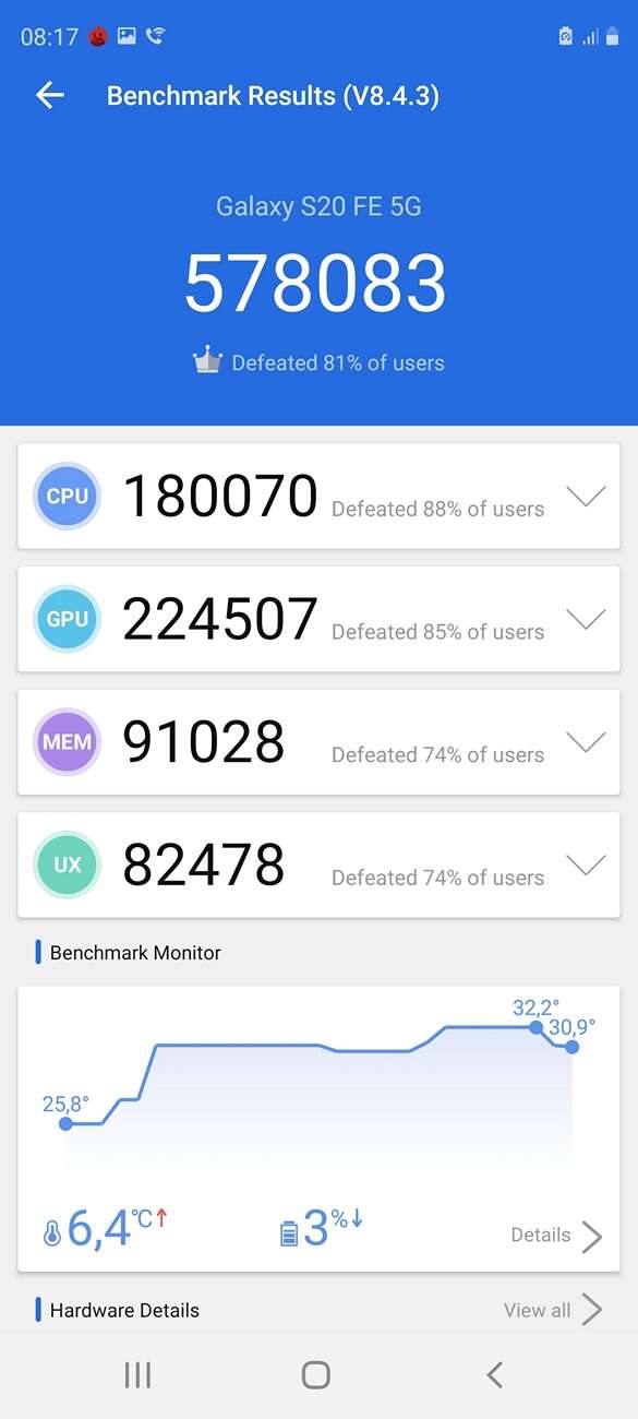 - Antutu Benchmark 8.4.3 – 578 083 pkt
