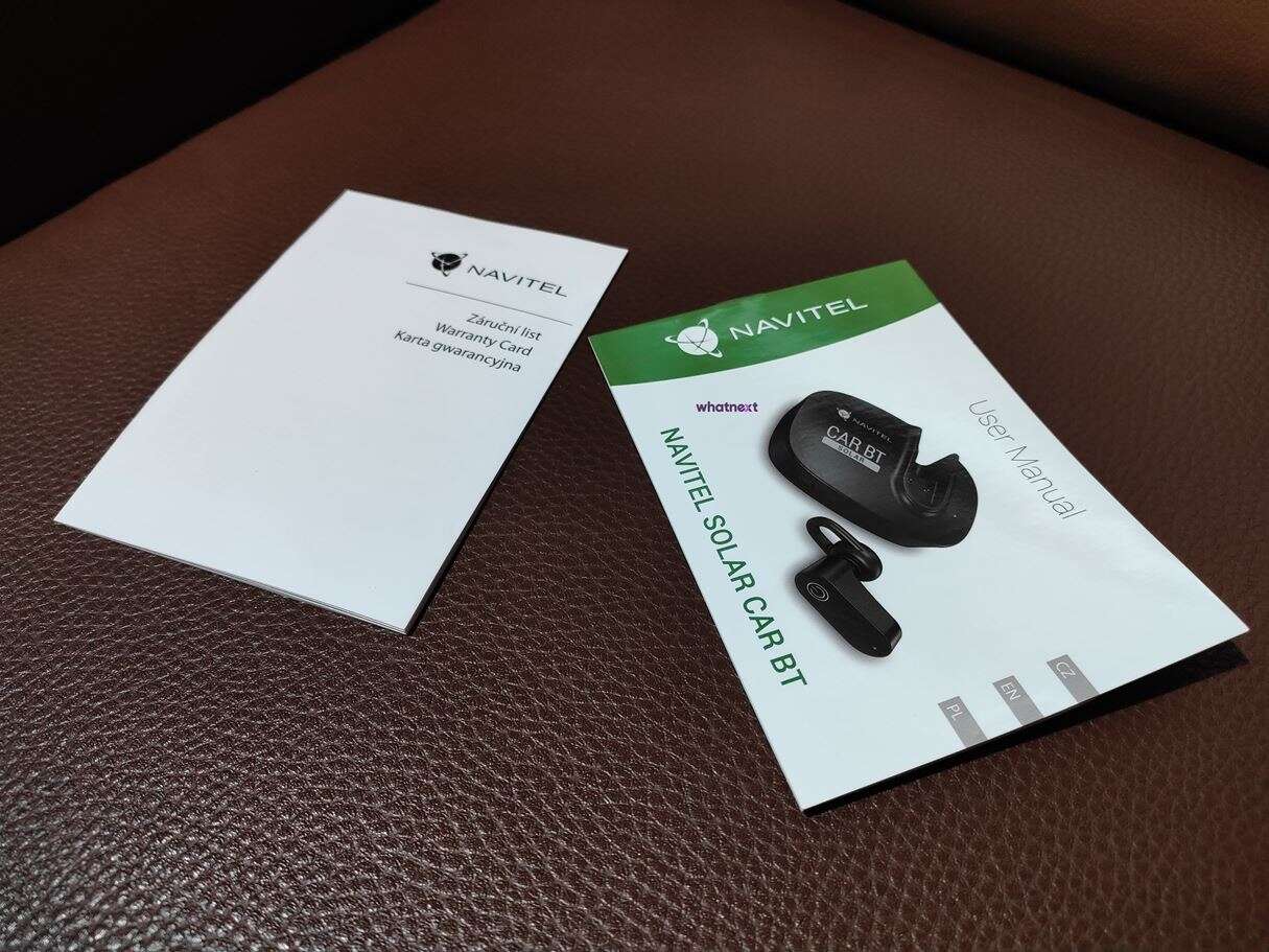 Mowa dokładnie o słuchawce Navitel Car BT Solar, która wpadła do oferty tego producenta stosunkowo niedawno, zgarniając jego wyrobiony już styl pod kątem opakowania. Charakterystyczna kolorystyka i wyposażenie od razu przywołują na myśl Navitela. Oprócz samej słuchawki niewielkie kwadratowe pudełko skrywa jedynie przewód microUSB, instrukcję obsługi oraz kartę gwarancyjną.