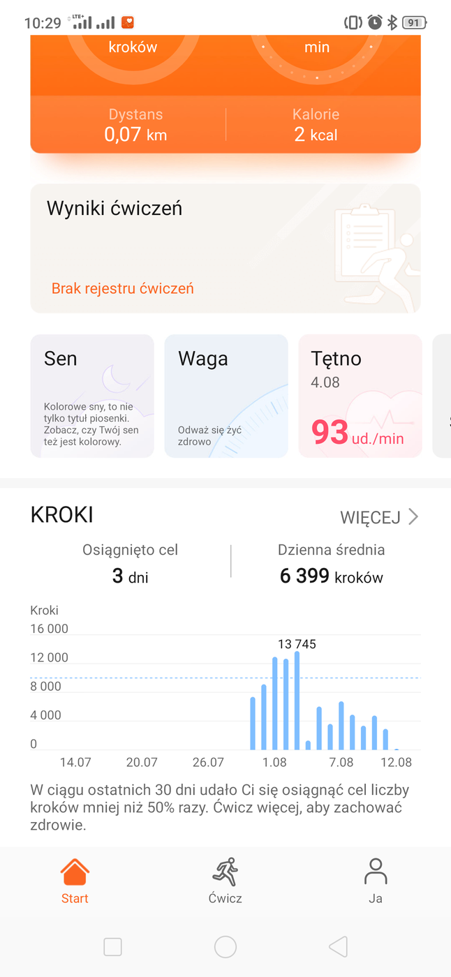 Aplikacja Huawei Zdrowie jest stabilna, prosta w obsłudze i dobrze przetłumaczona na język polski – nie będziecie mieli problemów z jej obsługą.