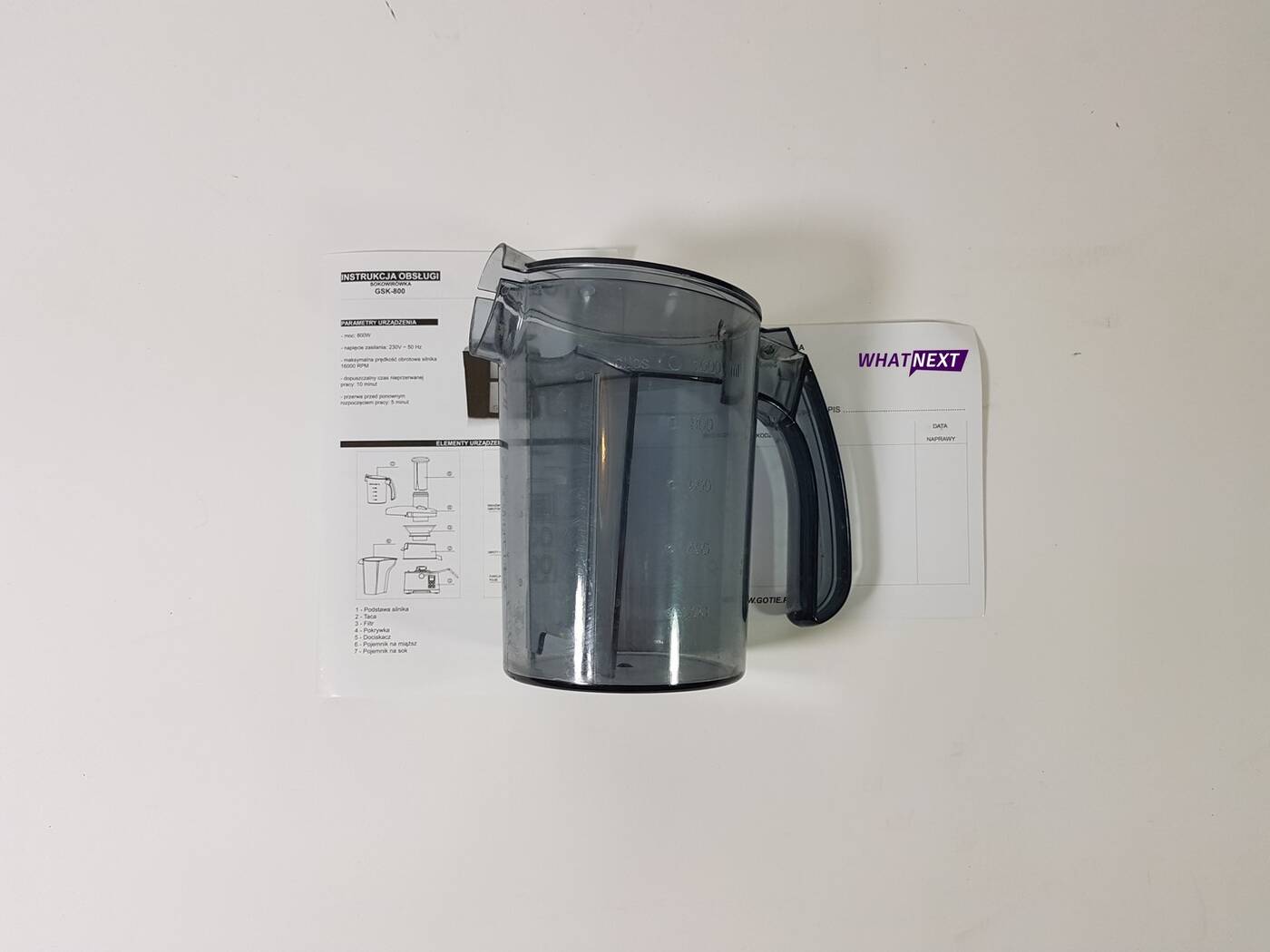 Sokowirówka przyszła w czarnym opakowaniu. Wraz z nią otrzymujemy instrukcję, kartę gwarancyjną oraz pojemnik na sok. Instrukcja została napisana w języku polskim i należy ją przeczytać przed uruchomieniem urządzenia. Jest w niej zawarte kilka ważnych rzeczy dotyczących obsługi urządzenia. Gwarancja wynosi 2 lata.
