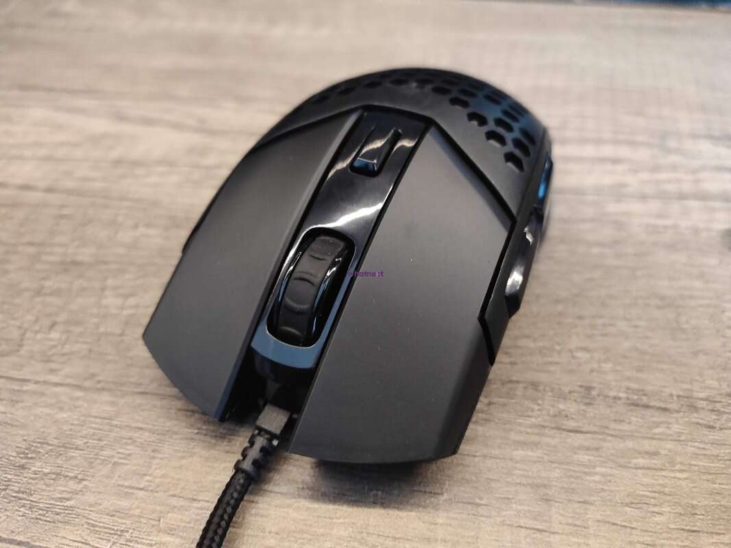 Na Battler składa się sześć głównych elementów obudowy, a dwa główne przyciski zostały od wszystkiego innego odseparowane. Znakomita większość myszki budują matowe wstawki, ale sekcję z rolką i przyciskiem funkcyjnym (zmiany DPI), dwa boczne przyciski oraz wstawki w rogach paneli bocznych wykonano już z plastiku typu glossy.