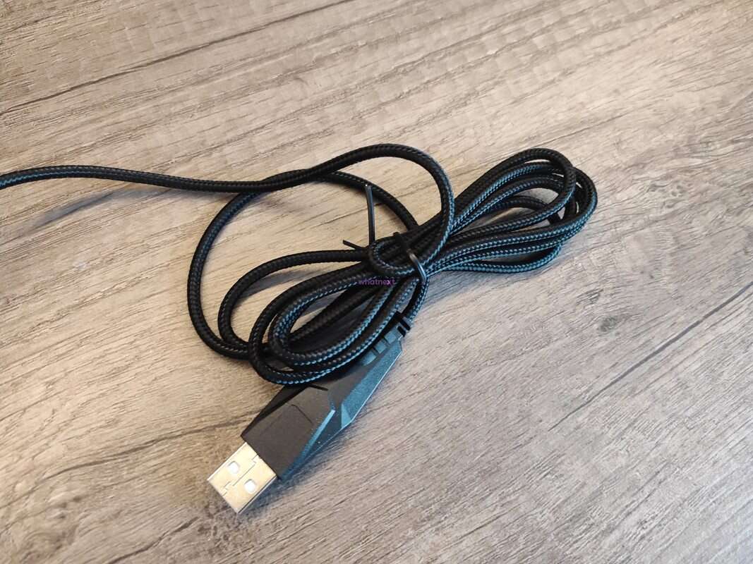 Całość dopełnia solidny, cienki i lekki przewód USB w dobrej jakości oplocie nylonowym o długości 155, a nie jak zwykle 200 cm oraz gruba gumowa wstawka na rolce.