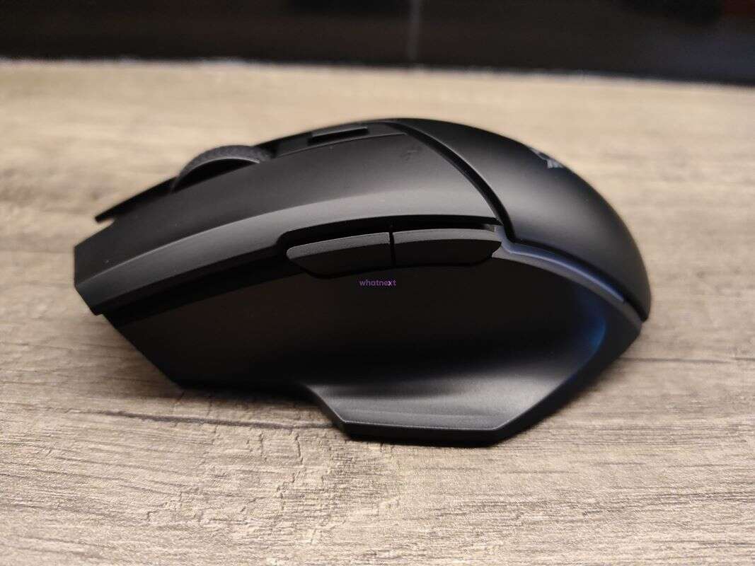 Przyciski boczne z kolei wydają z siebie dziwaczny dźwięk, ale działają poprawnie i nie zacinają się nawet po próbach wciśnięcia ich do środka. Rolka kontynuuje ten sam poziom jakości – jest cicha, bazuje na dosyć szerokim łożysku wewnętrznym i działa w moim guście nieco zbyt „lekko”, więc czasem łatwo o „przescrollowanie” broni w grze, czy dokumentu. Dodatkowo okazjonalnie wydaje z siebie krótki chrobot przy mocniejszym przewijaniu.