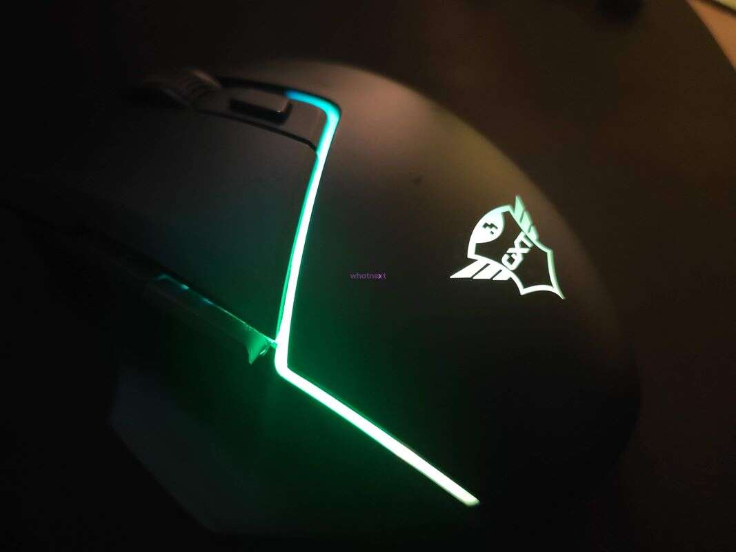 Pod kątem pozostałych fizycznych cech Disan wcale nie odbiega od konkurencji. Są dwa przyciski boczne na lewym panelu o przyzwoitej wielkości, owinięta gumą rolka i przycisk funkcyjny (w domyśle zmiany czułości) tuż nad nią. Wspomniana półeczka na kciuk ładnie uzupełnia ogół bryły, która wyróżnia się na tle innych myszek ciekawie zrealizowanym podświetleniem.