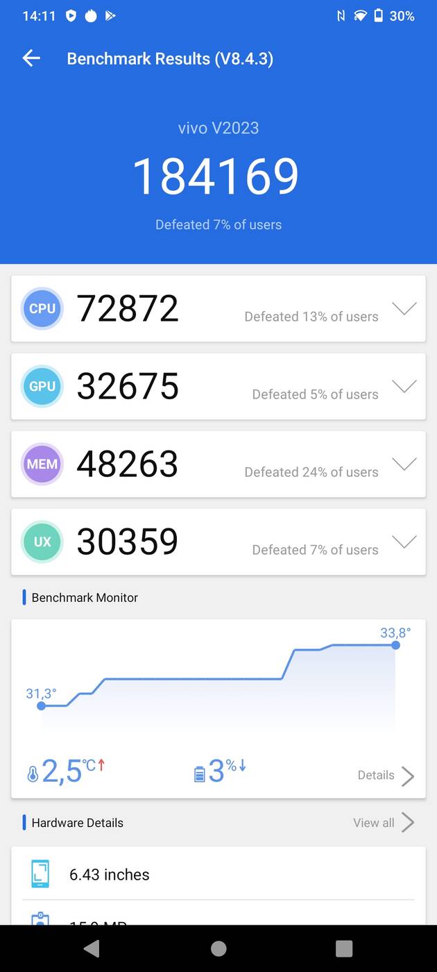 - Antutu Benchmark 8.4.3 – 184 169 pkt